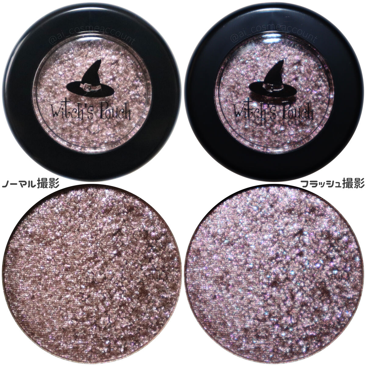 \高発色ピンクブラウン×多色グリッターのギラギラシャドウ‼︎/魔女の帽子がトレードマークの韓国コスメブランド『Witch'spouch-ウィッチズポーチ』の大人気ピグメントシャドウ『セルフィーフィックスピグメント』はギラッギラの圧縮した大粒グ...