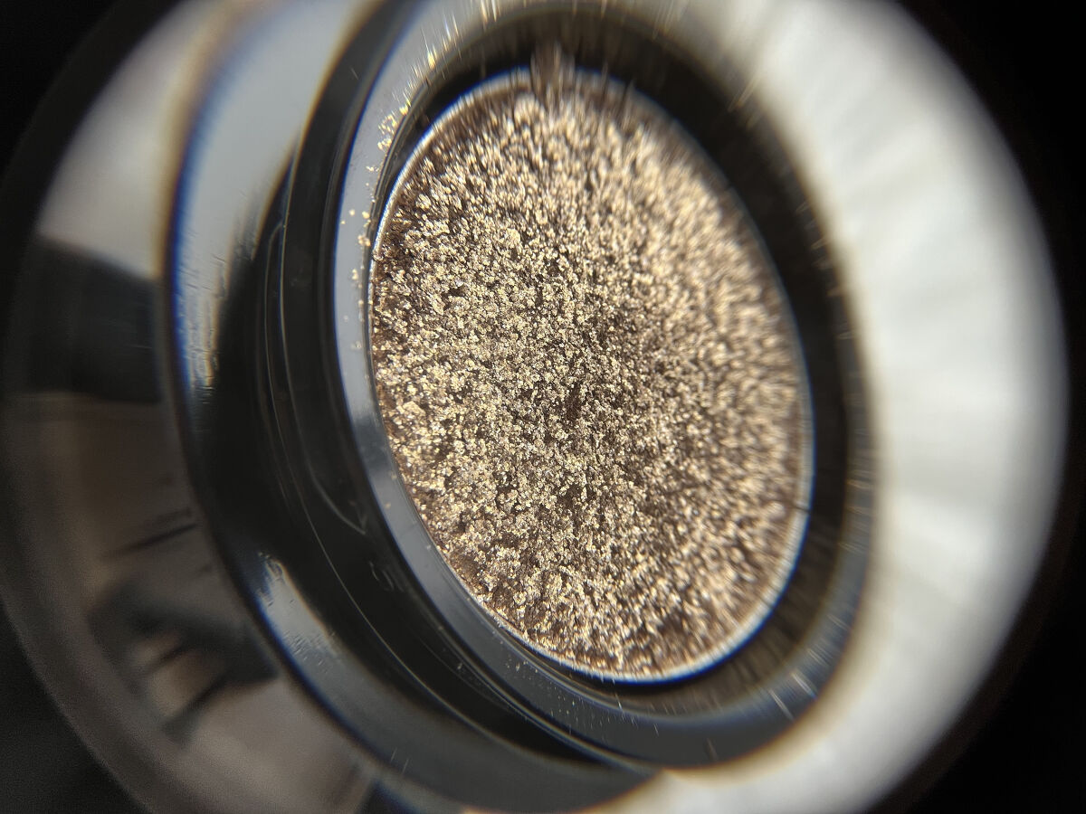 🌠大人っぽい落ち着いたゴールドカラー 🌠光をキャッチし鮮やかに輝く魔法のような瞬間密着シャドウ 🌠キラキラ高発色 🌠パールを圧縮させることで密着感のあるラメに 見た目もTHEゴールドって感じの色 ギランギランの大粒ラメなのかなと思ったけど指で伸ばしてみるとしっかり色づく、パールがぎっしりの中にラメが入っているような感じ 指でつけるとしっかりつくから個人的にはブラシを使うのがオススメ ブラシで少しづつ乗せていくと濃さも調整しやすいよ つけるときの飛び散りがなくてとても使いやすかった👌