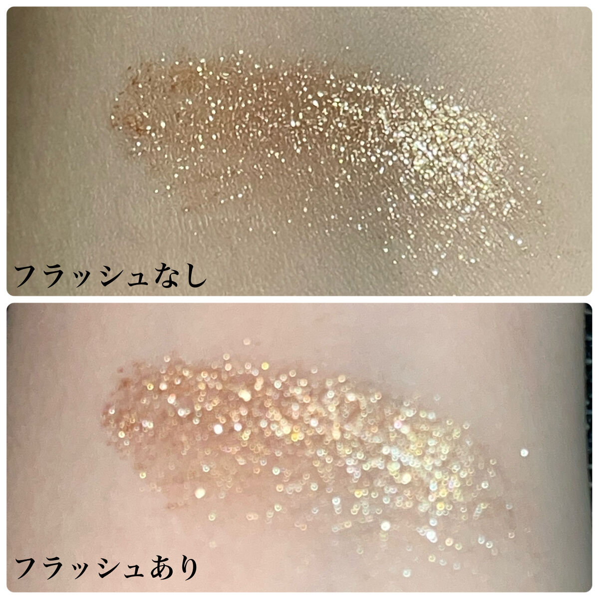 これもリピートです♡今回はブラウンとゴールドの間のようなお色です💕大きめなラメなのでキラキラが凄い!!付けすぎたらギラギラ😮私は軽めに目尻から下まぶたにかけてくの字につけます。手やブラシで付けると付けすぎるのでシリコンチップ使います(o^^o...