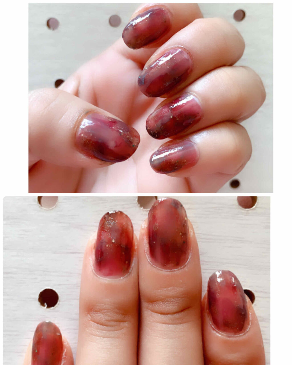 ⭐️べっこうネイル⭐️私がマニキュアを使ってべっこうネイルをする時の動画があります🙇♀️💦素人なのでツッコミたくなる場面もあると思いますがご了承下さい🙇♀️💦ベースには、リキュールネイルの赤を1度塗りしています!!・ネイルホリックジャング...