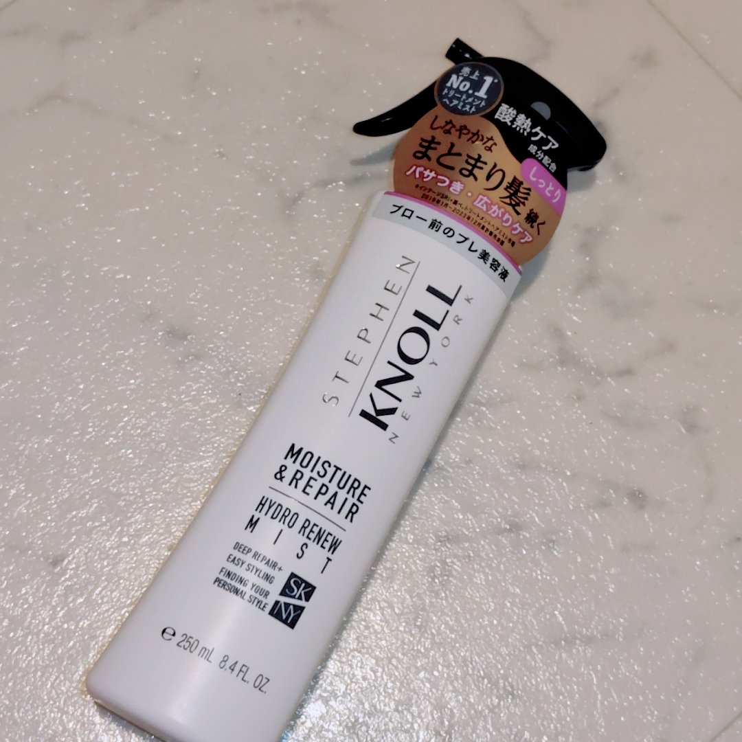 スティーブンノルニューヨークハイドロリニューミストモイスチュアリペア(アウトバストリートメント・ヘアミスト)総合評価@コスメでも高評価の人気ヘアミストで、しっとりまとまりのある髪に導くトリートメントミストです。250mLの大容量で日常使いしやすく、パサつきや広がりが気になる髪にも◎。⸻🌿使用感・仕上がりこのミストは、美容液のようなうるおいを与えつつ、毛先までしっとりまとまるタイプのヘアミスト。髪全体にスプレーして手ぐしやブラシでなじませるだけで、ドライヤー前のプレトリートメントとしても、スタイリングの仕上げとしても使えるのが嬉しいポイントです。髪内部と表面をダブルで補修する処方で、毛髪の水分持続性が高まりやすいという設計。太くて硬い髪や広がりやすい髪でも、しっとりまとまる仕上がりを目指せるタイプです。香りはグリーンフローラルムスクで、爽やかさと女性らしさが合わさったニュアンス。強すぎず、日常使いしやすい香りという口コミもあります。私的には何だか美容院帰りのような気分になる香り。⸻✔「髪がしっとりまとまる!」広がりやすい髪質でも、スプレー後にドライヤーで乾かすと毛先までしっとりまとまると感じました。指通りもよく、乾燥時期に頼りになるアイテム。✔「香りがいい!」ミストの香りが強すぎず、ふわっと優しいフローラル系で使いやすい。香りの好き嫌いは個人差あり。✔「スプレーが細かいのが良い」均一に髪に行き渡りやすく、ドライヤー前にさっと使えるのが便利⸻✨仕上がりの印象 • しっとりまとまり感アップ • 毛先まで保湿されてぱさつきにくい • パーマ・ブロー前に使うとスタイリングが整いやすい • 軽いテクスチャーのミストで日常使いしやすい • 熱プロテクト成分入りでドライヤーや熱ダメージ対策にも◎⸻💡使い方のコツ✔ドライヤー前にスプレー濡れ髪・乾いた髪どちらでもOKですが、タオルドライ後に使うと補修効果やまとまり感が出やすいです。✔ブローやスタイリング前にも◎そのままブラシやアイロンを使うと、よりツヤやまとまり感が出やすい✔毛先中心にスプレー広がりやすい部分に重点的に吹きかけると、まとまり感が強く出やすいです。⸻⭐こんな人におすすめ✔パサつき・広がりが気になる髪質✔毎日のドライヤーやスタイリング前にケアしたい✔しっとりまとまる仕上がりが好き✔手軽に使えるミストヘアトリートメントを探している✔甘めのフローラル系の香りが好き⸻全体として、“毎日のヘアケアの仕上げ&プレトリートメントとして使いやすい、しっとりまとまり系のミスト”という印象のアイテムです。大容量でコスパが良く、日常使いしやすいヘアミストとして、髪の乾燥や広がりが気になる方にはとてもおすすめです。#うるふわ髪アプデ計画#ヘアミスト#つや髪#ドラコス#スタイリング#カラーコントロール#髪の毛サラサラ#ヘアスプレー#乾燥ケア#美髪#ダメージヘア#寝癖直し#ミスト#使い切り#使い切り