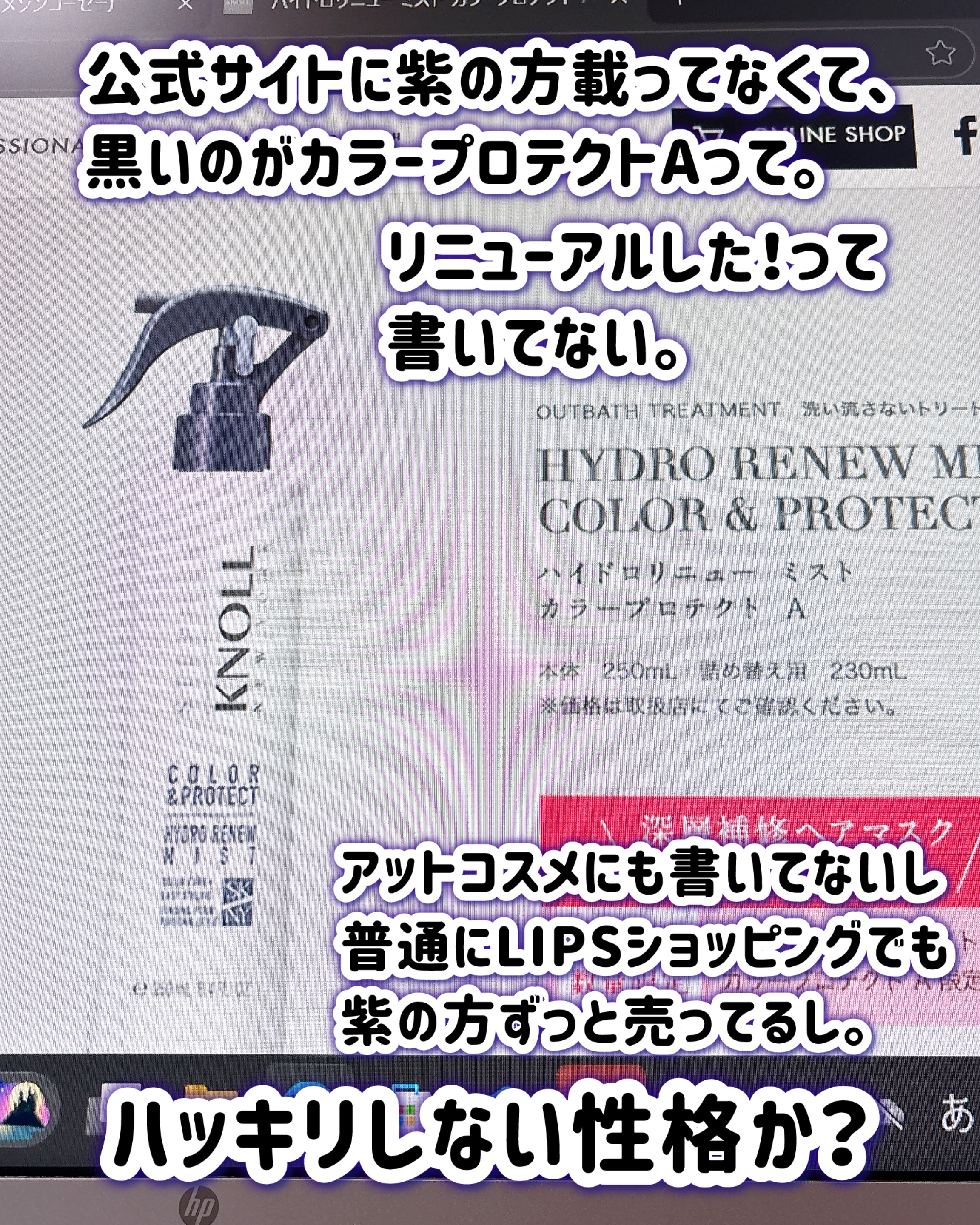 以前、LIPSショッピングで購入したスティーブンノルハイドロリニューミストカラープロテクト本体終わりにさしかかり、気に入ったので詰め替えもLIPSショッピングで買いました。それで情報見ようと思ってコーセーの公式サイトで商品探したら…ないの...