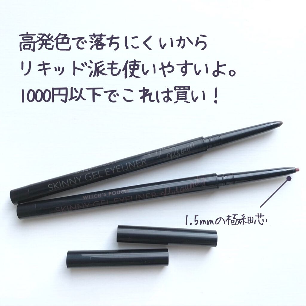 こんなに優しいタッチで描けるジェルライナーは初めて#WitchsPouch#スキニージェルアイライナー¥968(税込)優しい印象で目元を仕上げたい時に活躍するのがジェルアイライナー。リキッドアイライナーよりもぼかし...
