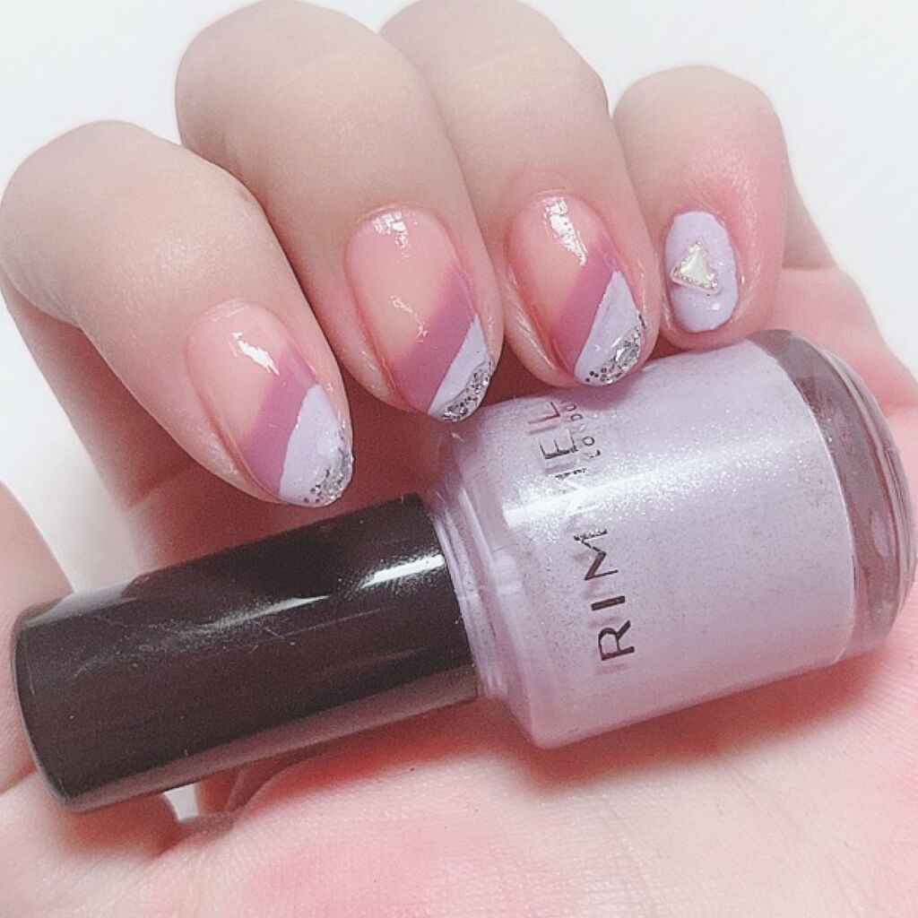 シルバーのラメがとっても綺麗✨ 1度塗りで高発色!しかも速乾で、塗りやすい❤️ このカラーは幻想的な感じでもあるの。シルバーラメがチラチラと、すごくやさしく素敵なカラー💜 最高可愛いキラキラネイルです✨💖 リンメルのネイルは気に入りすぎてまた集めたくなったな、、やばい(笑)