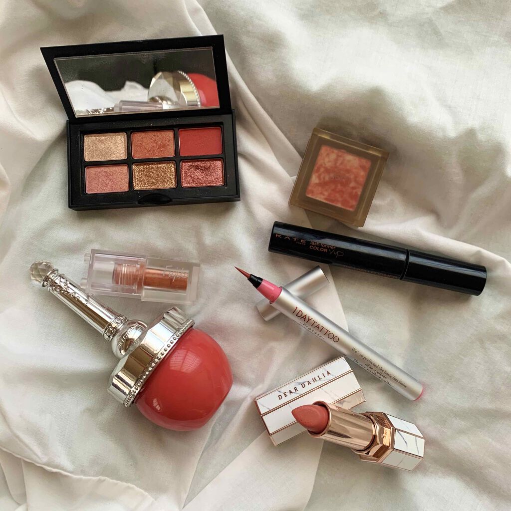 #今日のメイクざっくり説明です、ツイートのコピペ目ん玉は無加工の自然光下地 SHISEIDOシンクロスキントーンアッププライマーコンパクトケサランパサランアンダーアイブライトナーで目元のクマと口角のくすみを消すちふれルースパウダー1を全体にはたくオルビスグロウスキンコンパクトの左の色をチークベースとして、右ハイライトとしてぬるJ.MUEスリムアイブロウペンシル02使ってからURGLAMアイブロウパウダーa01使用ヘビーローテーションカラーリングアイブロウマイクロ06使用ノーズシャドウはCANMAKEシェーディングパウダー01、フェイスラインのシェードは05ラポドゥジェムシングルアイカラーse02をアイホール全体と下瞼NARSオーガズムミニアイシャドウパレット上段真ん中をメインとして目尻側にフジコミニエアリーディップパウダーVOCE限定カラーで締め色、三角ゾーンにもラメとフジコの境目をなくすようにNARSの同じ色を下瞼にラメをもういちど黒目の上と下瞼の黒目の下あたりにケーパレットワンデイタトゥープロキャストザアイライナーを垂れ目ぽくマスカラはKATEラッシュフォーマーカラーオレンジブラウンのやつ下まつげ塗りにくいのでたててぬるチークはJillSTUARTローズブラッシュに、画像ないけどロムアンドベターザンチーク01を重ねたリップはディアダリアインテンスサテンリップスティック810#ブライト春夏#イエベ春#ピンクメイク#限定コスメ#韓国コスメ#プチプラ#デパコス評価は最近購入したものにしておきます。