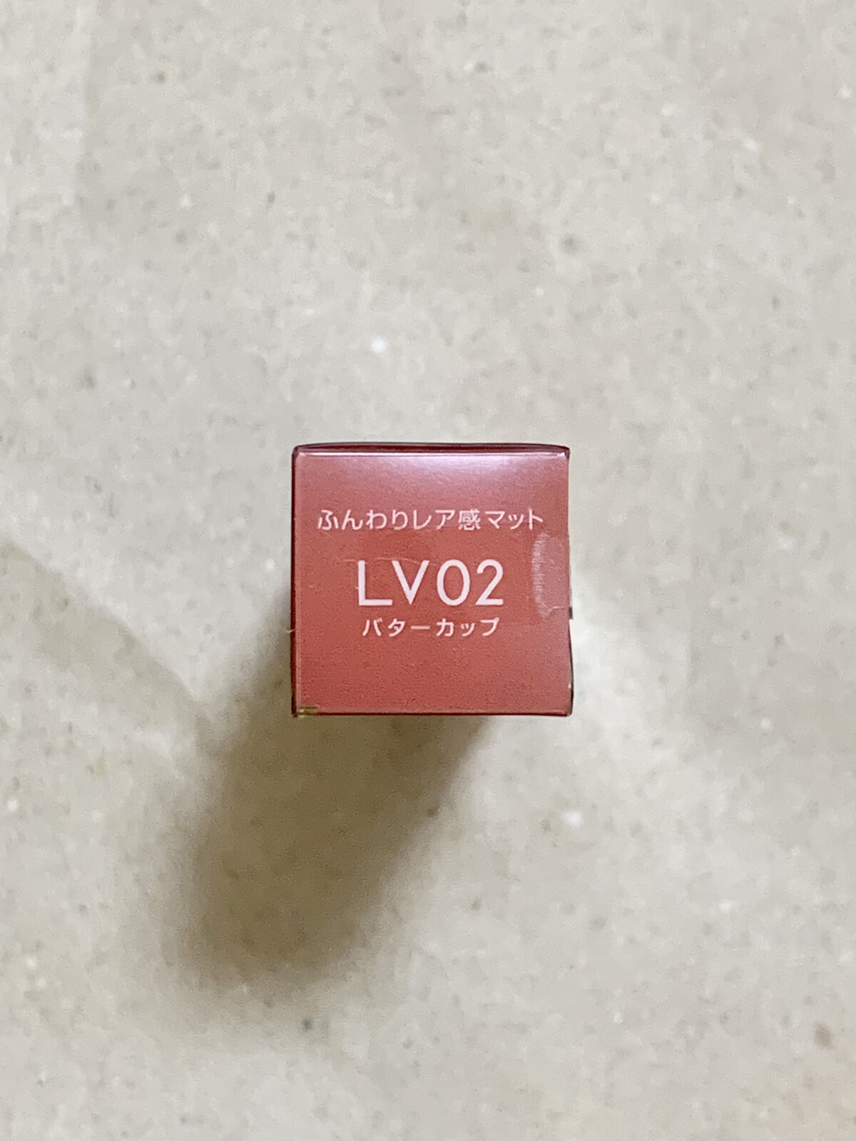カラーはLV02バターカップです。 このカラーすっごく可愛くて、一目惚れして購入しました! デザインもおしゃれですよね!! LV02バターカップのカラーはイエベさんが向いてると思います。 仕上がりはマットな感じになります。 仕上がりは満足ですが、乾燥が少し気になりました。 リップクリームで保湿後にこのリップを使用しましたがそれでも乾燥が気になったので、より高保湿のリップクリームを使用してからの方がいいかと思います。 あと色落ちがすごいです。 ティッシュオフすると、色がすぐ落ちます。 当然マスクをしていたら色落ちします。 毎度毎度塗り直すのが大変💦 思っているよりも早く使い切りそうな予感… リピするかは迷いますね〜 マットリップをお探しの方は試しに購入してみるのもアリですが、私は他のリップも探したいと思います。