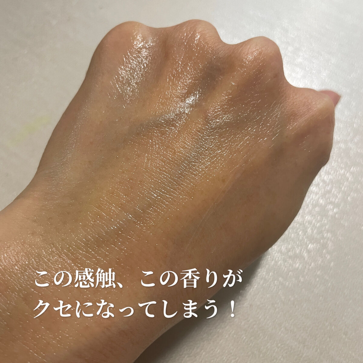 柔らかい軽いテクスチャーで、肌にもフワッと伸びてくれて、なじみも良い! 夏にも使いやすいテクスチャーだなと思います! 香りは少し強めかな…。 好みが分かれるかもしれません。 夜でマスクをしていない状態でも、顔に塗ったあと長時間香りを感じました。 なのでマスクをすると香りがキツイかも…と思い、私は基本夜のスキンケアとして使用しています。 香りがもう少し控えめだと朝晩使えたなと思います。