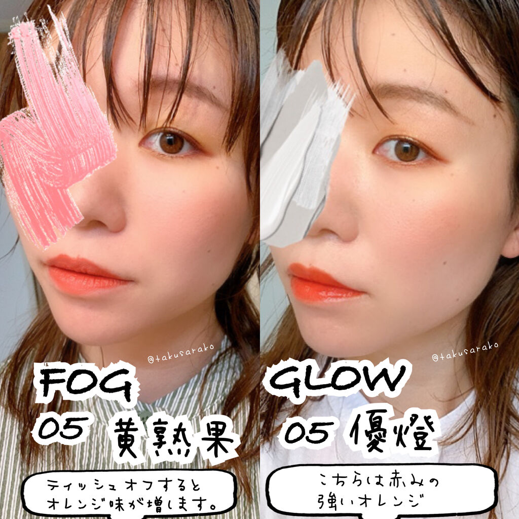 みずみずしく爽やかな艶がこぼれるような デュウィーオレンジ。 シアーなオレンジだと、唇の色が透けて ピンクかコーラルになっちゃう人は私です。 旦那には、 口、赤すぎない?( °△°) と聞かれるほどの赤みオレンジなのですが 引きで見た方がちゃんとオレンジ感🍊、 わかります🙆🏻👌✨ フォグも良いけど、 やっぱりツヤツヤリップっていいなぁ💕 一度塗りして、ティッシュオフして 二度塗りしてからティッシュオフすれば 色残りも良く、マスクの下でもわりといけます🙆♀️
