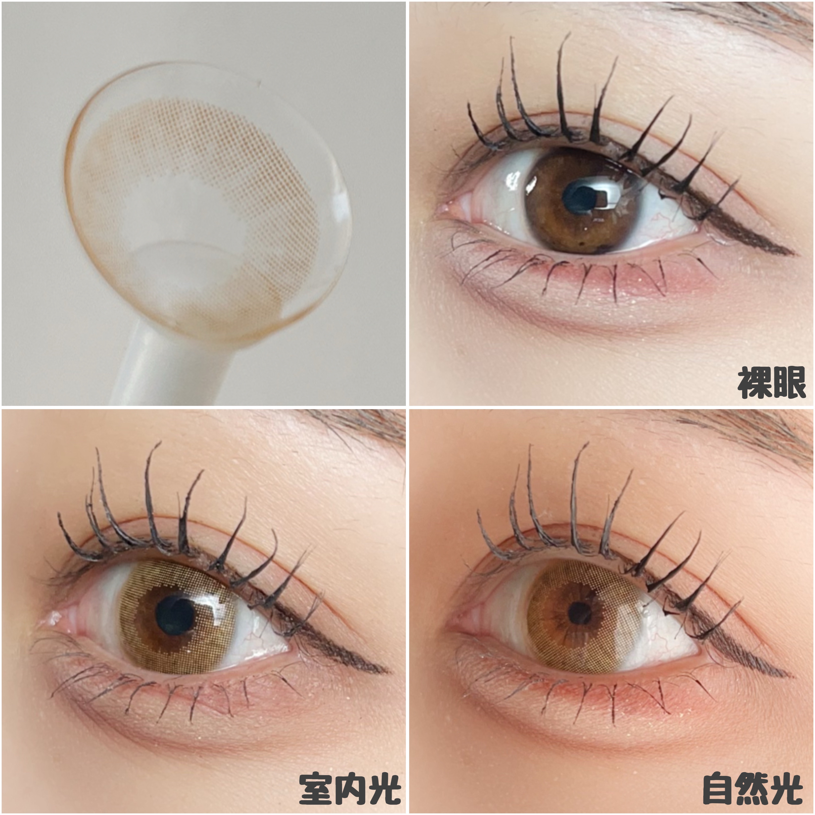 フチは無くて瞳に着色するだけのタイプなのでデカ目効果はないのですが、その分しっかりベージュに発色します。 ブルベかつ日本人顔の私だと浮く感じがしたので、イエベさんやハーフ顔の方なら馴染みそうです! マイナス点はやや乾燥するところ(私がドライアイなだけかもしれない)