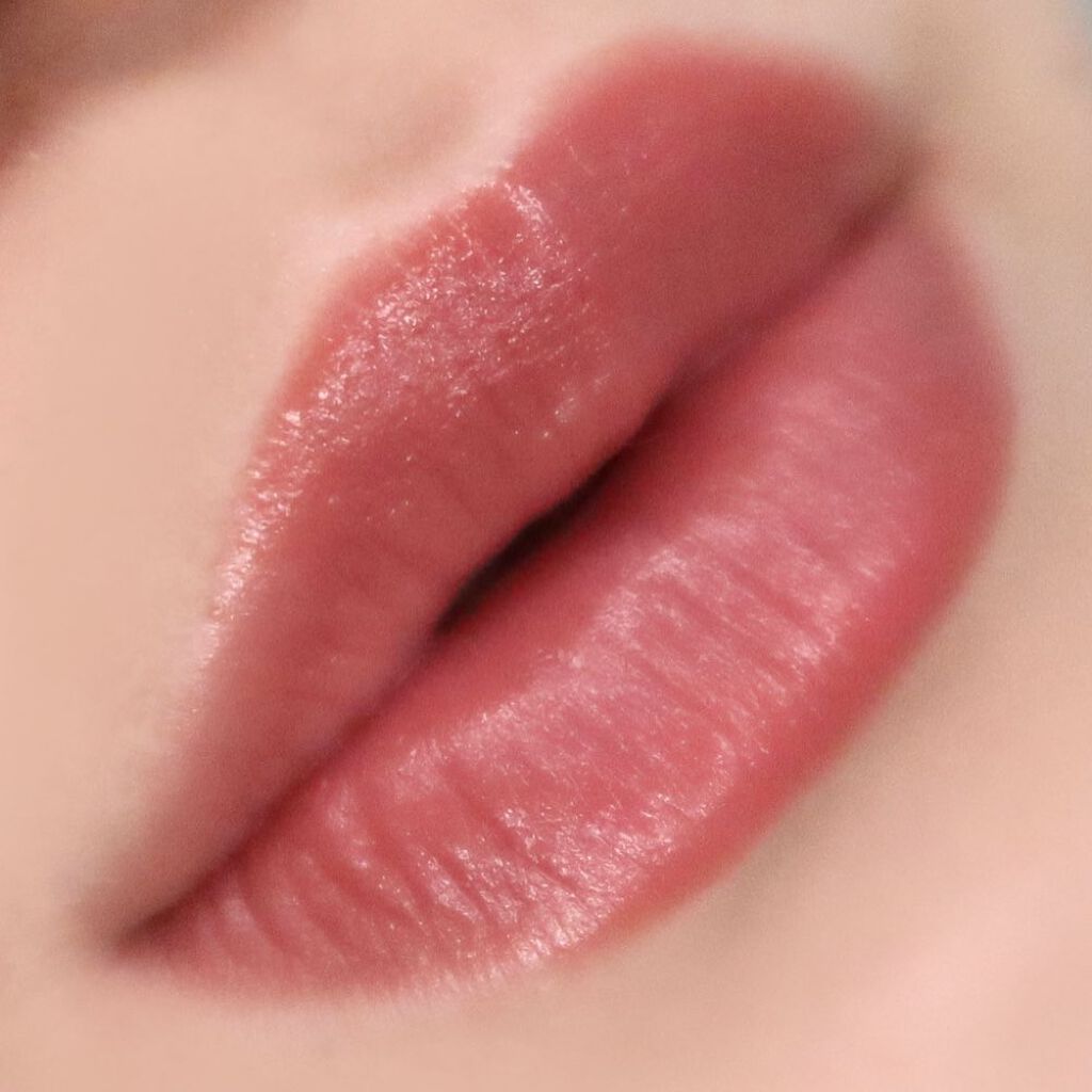 なめらかな塗り心地で、透けるようなふんわりマットに仕上げるリップ💄 するすると塗れ、軽い付け心地です。 唇をふんわりと染め、美しい発色が持続します! 塗ってすぐティッシュオフすると写真くらいの色持ちでした。