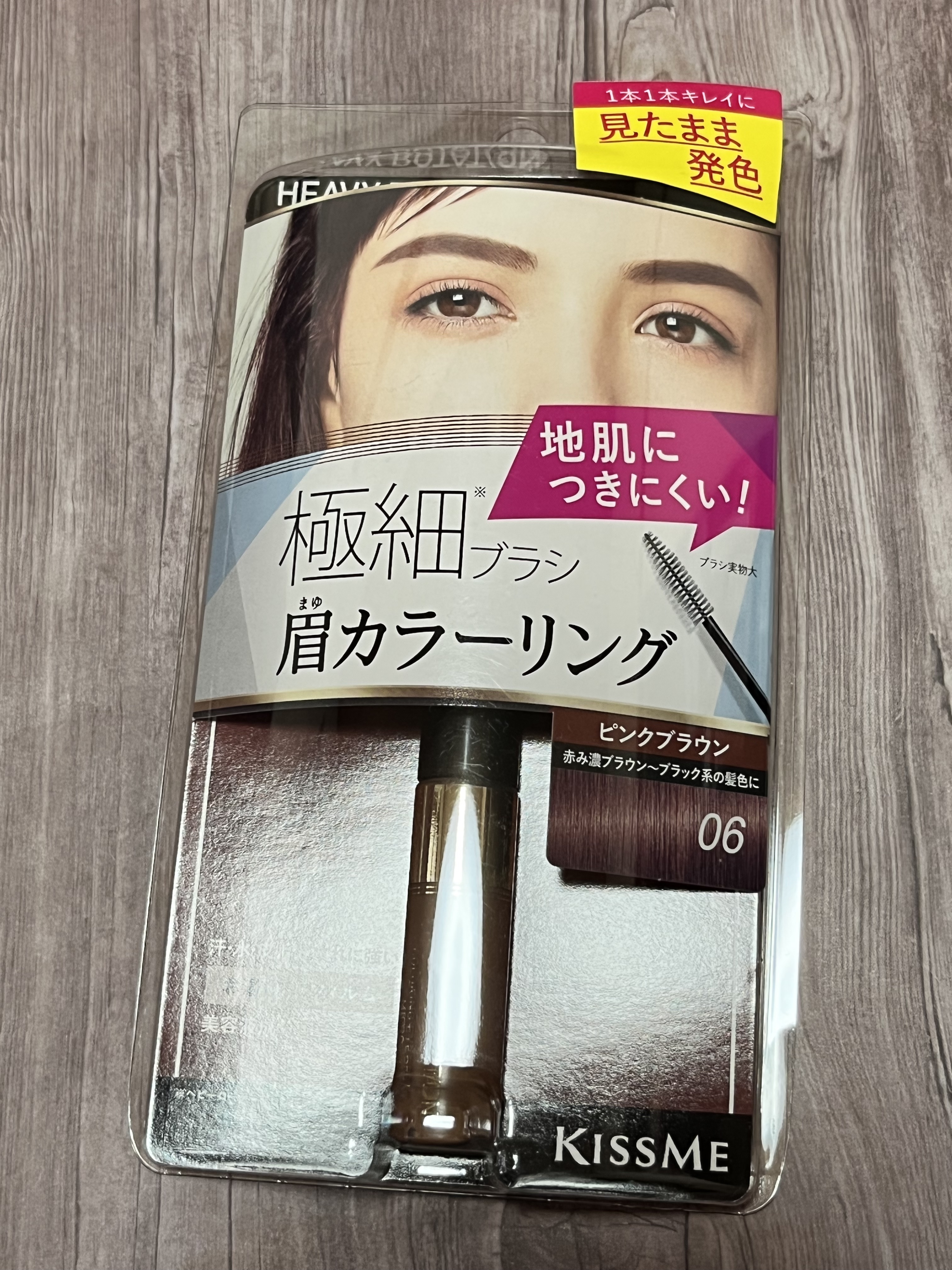 ヘビーローテーションカラーリングアイブロウマイクロ06ピンクブラウンです。ピンクブラウン味は正直あんまりなかったかなと。。眉マスカラとしては、パリッとなりすぎず、適度に色づいてくれてよかったです。