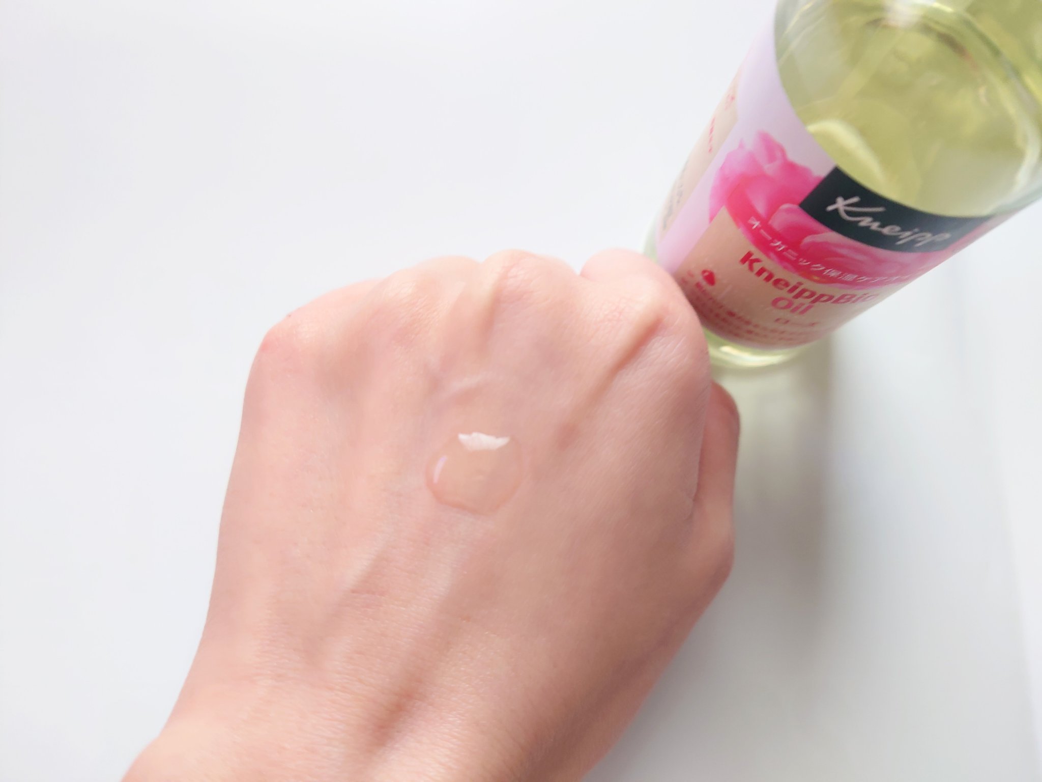 商品名🍓クナイプビオオイルローズ価格🍓1980円内容量🍓100mL購入場所🍓LIPS商品説明🍓保湿効果の高い“ローズヒップオイル”を配合し、肌にハリ・弾力をもたらし、キメの整ったなめらかな肌へ導くボディ・フェイス用オイル。サラッとしていてべたつかないテクスチャーは肌なじみがよく、全身にお使いいただけます。乾燥しがちな肌を潤いに満ちたもっちり肌に導き、エイジングケアにオススメの1本です。天然のダマスクローズエッセンシャルオイル配合(香り成分:ダマスクバラ花油)。優雅でエレガントな香りがお手入れの時間を贅沢で豊かなものに。(公式より)使用方法🍓(公式より)[Face]普段のお手入れのステップとして化粧水のあとに1〜2滴をなじませます。乳液やクリームは必要ありませんが、お肌の状態によって乳液やクリームと混ぜてご使用いただけます。お好みにより、化粧水の前にお使いいただくこともできます。[Body]お風呂上がりの水分が肌に残った状態で手のひらにたっぷりと取り、なじませます。肌の水分となじみ、ベタつきません。軽くマッサージするのも効果的です。マッサージする場合は身体の下から上へやさしく撫で上げます。べたつかないので使用後すぐに服を着られます。使用感🍓私は顔ではなく、妊娠線予防として体に使用していました。公式の使用方法ではなく、別のボディクリームを塗布してから使用し、なじませていました。肌の水分となじませていないせいかベタつきは多少感じましたが、私はあまり気にならなかったです!ローズの匂いはふんわり香る程度でした。その他🍓お腹や胸元、二の腕、臀部、太もも辺りに毎日使用して3ヶ月程で使い切りました。多めに量を出す時には問題ありませんが、少しの量を出そうとするとタラ〜とオイルがもれてしまいます。もれてきたオイルは首元等に使用していました。現在は別のボディオイルを使用していますが、真冬の乾燥する時期にはまたリピートしたいと思える商品でした!
