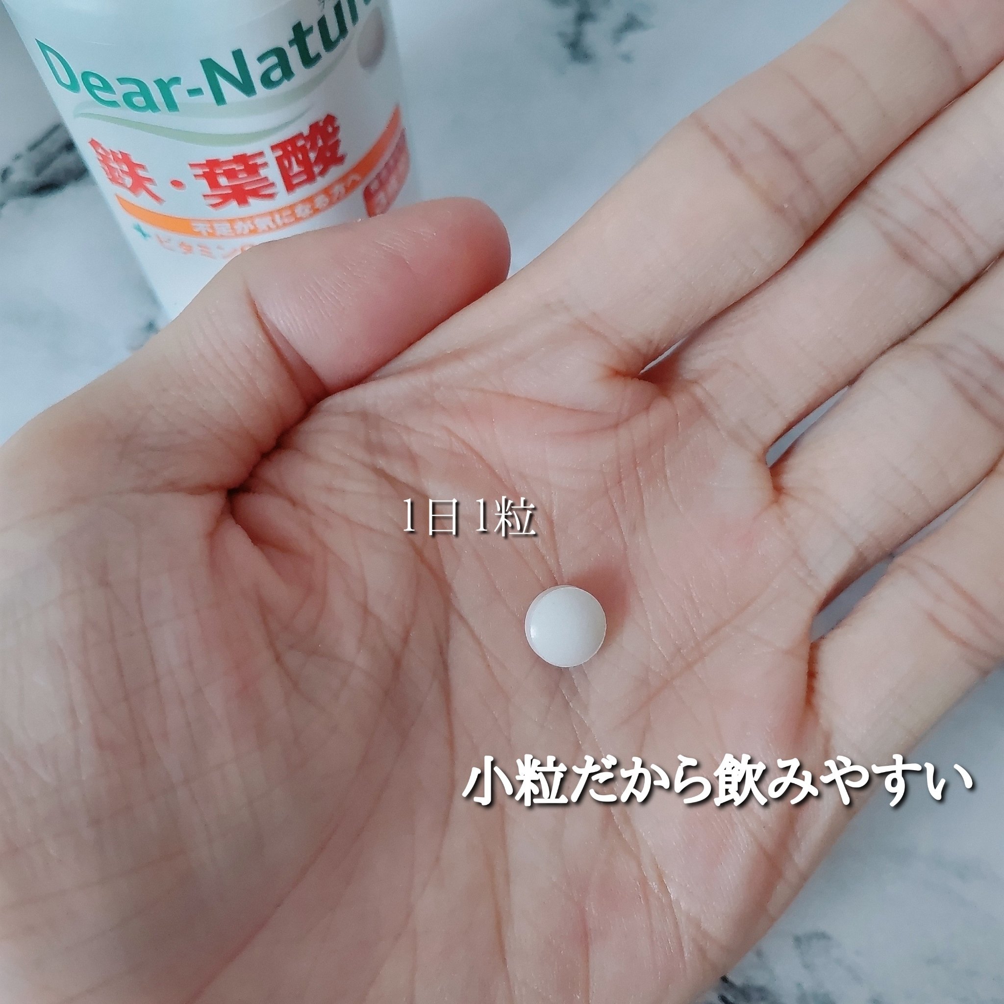 実は美容効果もある鉄分!!みんな取れてる?👀【使った商品】Dear-Natura鉄・葉酸60粒【商品の特徴】粒状の鉄&葉酸サプリメント【良いところ】・粒が白く、見た目的な気持ち悪さがない・粒が小さくて飲みやすい・手軽に鉄分や葉酸の摂取ができる・有名企業の商品の為、安心感がある・街のドラッグストアで購入できる【どんな人におすすめ?】・鉄欠乏性貧血(鉄不足)の人・鉄分や葉酸の不足が気になる人・手軽に栄養摂取をしたい人飲みはじめたきっかけ...鉄欠乏性貧血になり、サプリメントの摂取を始めました。元々、貧血による自覚症状はほぼナシだったので飲んだことによる体調の変化は良くも悪くも0です。ですが、色々調べてみると鉄分は美容にも良いと知りました💡なんと、鉄分はコラーゲンの生成にも欠かせない栄養素であり、不足するとシミやシワ・抜け毛などの原因になってしまうのだとか😭しかし、女性は生理もあるので鉄欠乏になりやすいのだそつです💦食事での摂取が望ましいとは思いますが、なかなか難しいですよね〜🥲サプリは手軽に不足を補て便利✨健康のためにも美容のためにも引き続き飲んでみようと思います。#インナー美容はじめます#サプリメント#ディアナチュラ#サプリ