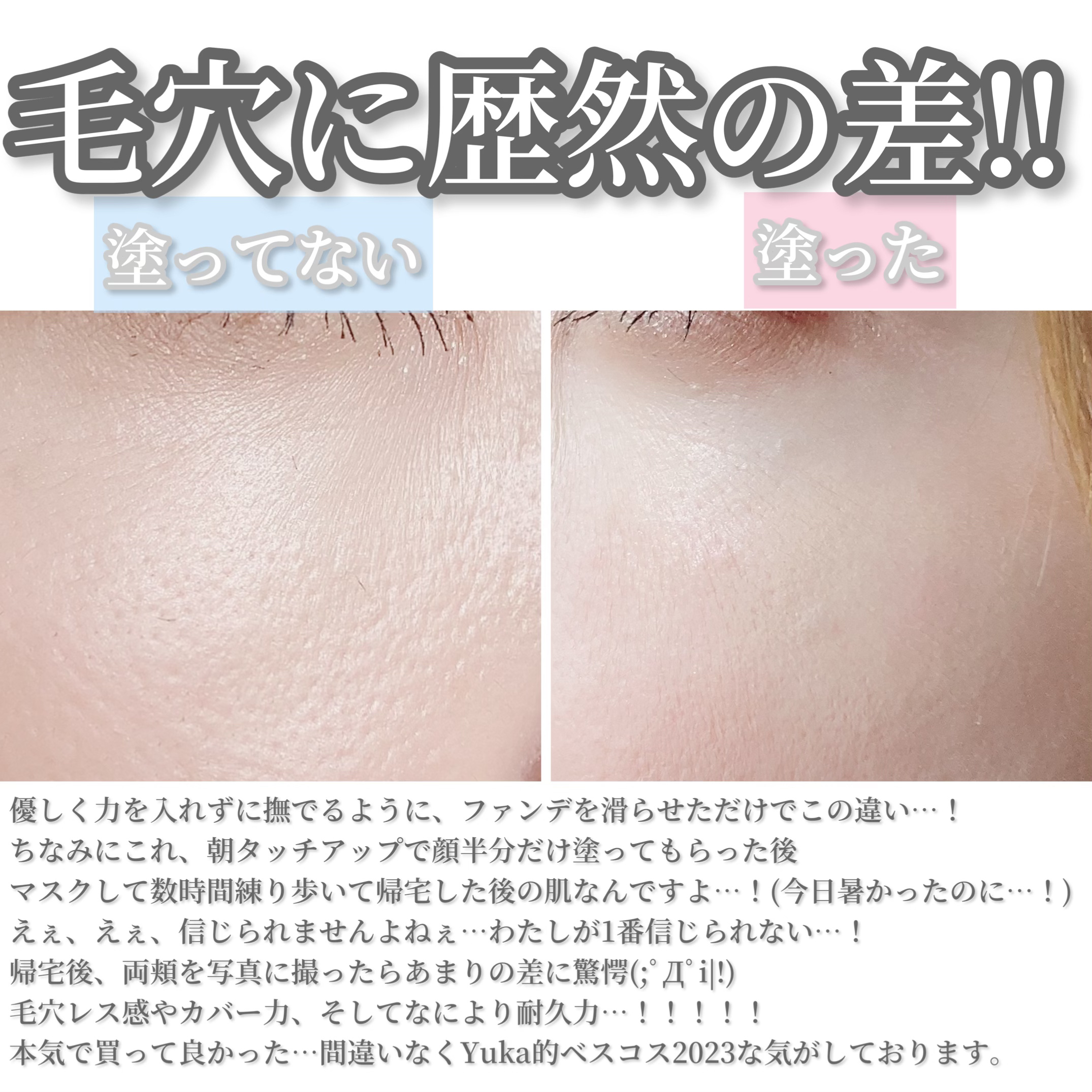 前にいただいたので何日か使用してみました✨エレガンスは高いイメージでなかなか手が届かないのでありがたい😭😭😭厚塗り感がなく、毛穴のカバー力がめちゃくちゃ高いです🥺私は頬の辺りの毛穴が気になるんですがあれ?どこいった?って感じでびっくりしました...