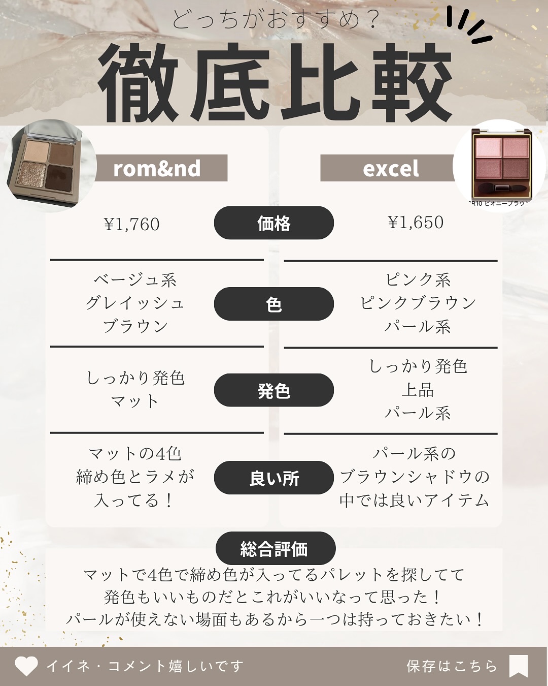 多色パレットだとどれ塗ればいいか悩む…🤔💭4色パレットで、締め色が入ってて、万能ブラウンで、オケージョン問わず使えるマット。そんなシャドウ無いかなあって探してみました!!ラメの所がパールだったら文句無しだった🥹他にもいいアイシャドウ無いか探し...