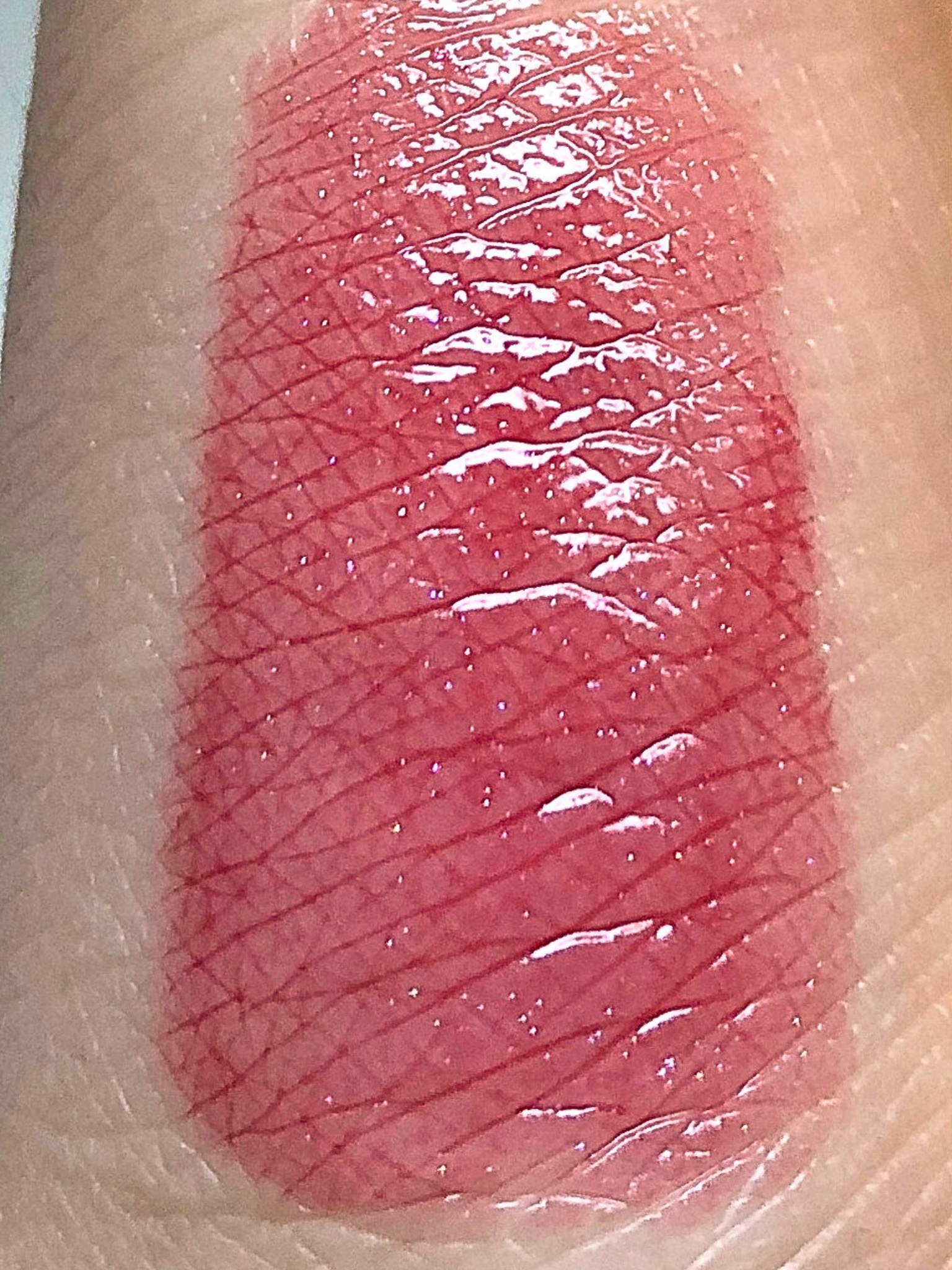 細かいラメが入っていて、そんなに目立たないけど 角度でちょっとキラキラして可愛いです! かなりツヤツヤでぷるぷるの唇になれます。 チップはモケモケで塗りやすいけど、ちょっと大きいかなと思いました。 発色はいいし、とても可愛いです。