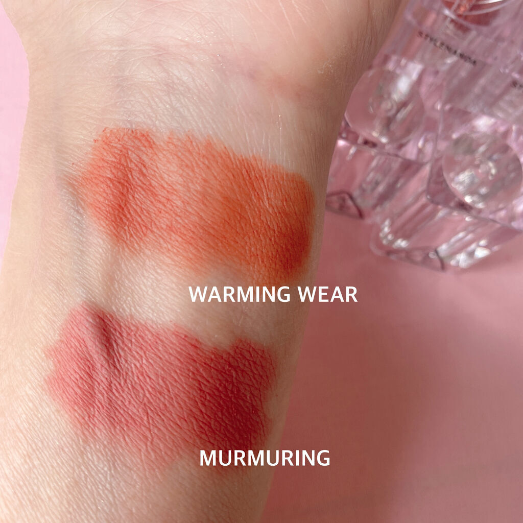 スルスルした塗り心地のソフトマットリップ オレンジブラウン系のWARMING WEARと ピンクベージュ系のMURMURING 韓国リップはグラデーションがしやすくてすき