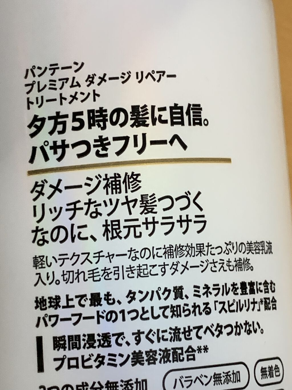 パンテーンプレミアムダメージリペアーシャンプー/トリートメントアットコスメか何かのシールが貼ってあったからいいんかなって買ってみたけど合わなかったシャンプーはいい匂いで泡立ちもいいけど流すとキシキシしてるトリートメントはヌルヌル感がすごくてシ...