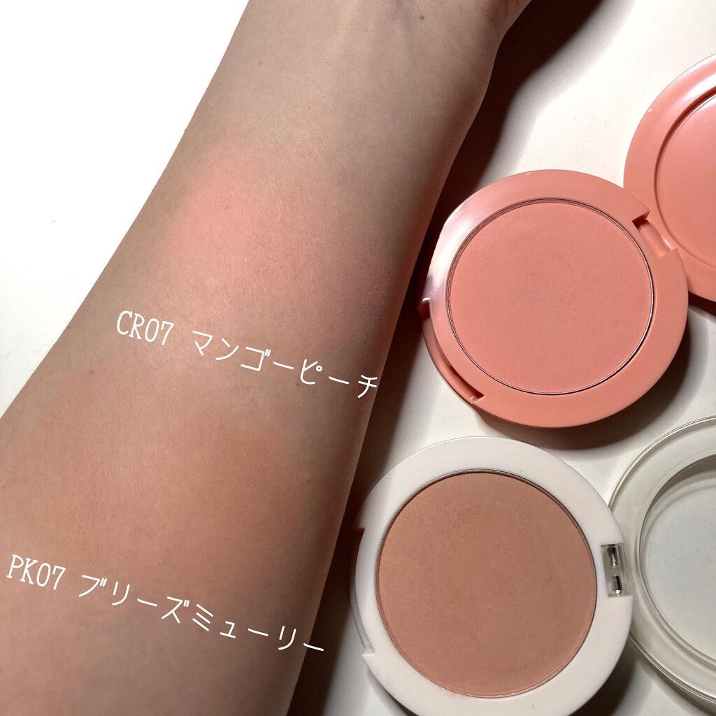 華やかで優しいカラー! 細かくて柔らかい粒子が肌に密着し、長時間持続します⏰ CR07 マンゴーピーチ 柔らかなパステル系のピーチコーラルカラー PK07 ブリーズミューリー 秋の雰囲気を演出するピンクブラウンカラー そしてとても良い香りで癒されます💕 クオリティもコスパも高いのでおすすめです!