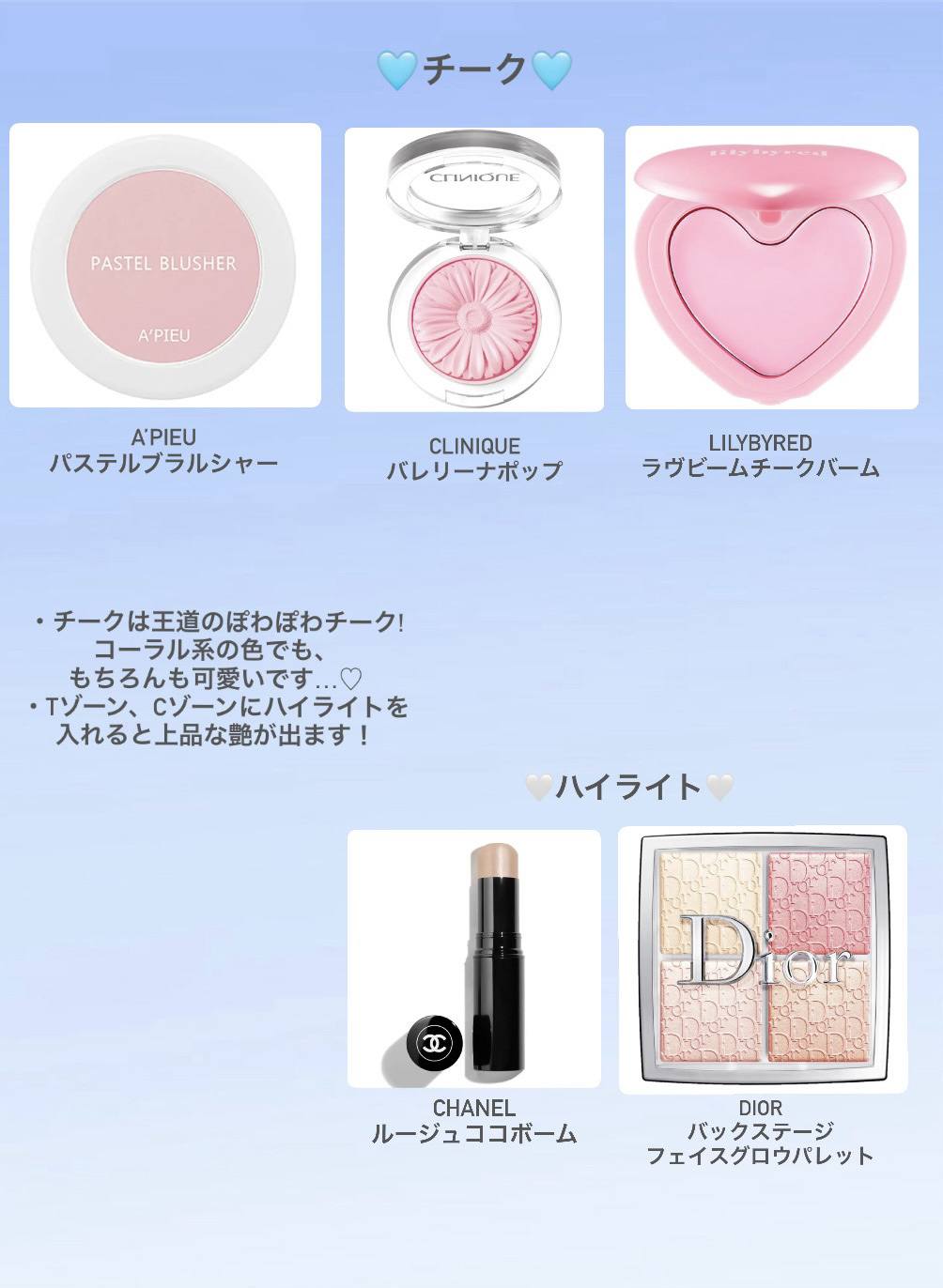 無垢であどけない印象の色が可愛すぎます🫠💞 こちらはバームタイプなのでパウダーのチークより乾燥しにくく、内側から滲み出るような血色感が出せるのがポイント。伸ばすとべたつきもなくて使いやすい。発色はとても良いのですが、白みが強いおかげで派手すぎずナチュラルに仕上がります。 使い方はパフか指でポンポン塗りがおすすめ。私は購入時の特典で付いてきたミニパフを使っています。サイズが丁度良くて蓋も閉めれるので持っている方は是非〇 デメリットは特にありませんが、パッケージがラブリーすぎて使いにくい方もいるかも。個人的には大好きなデザインです💭