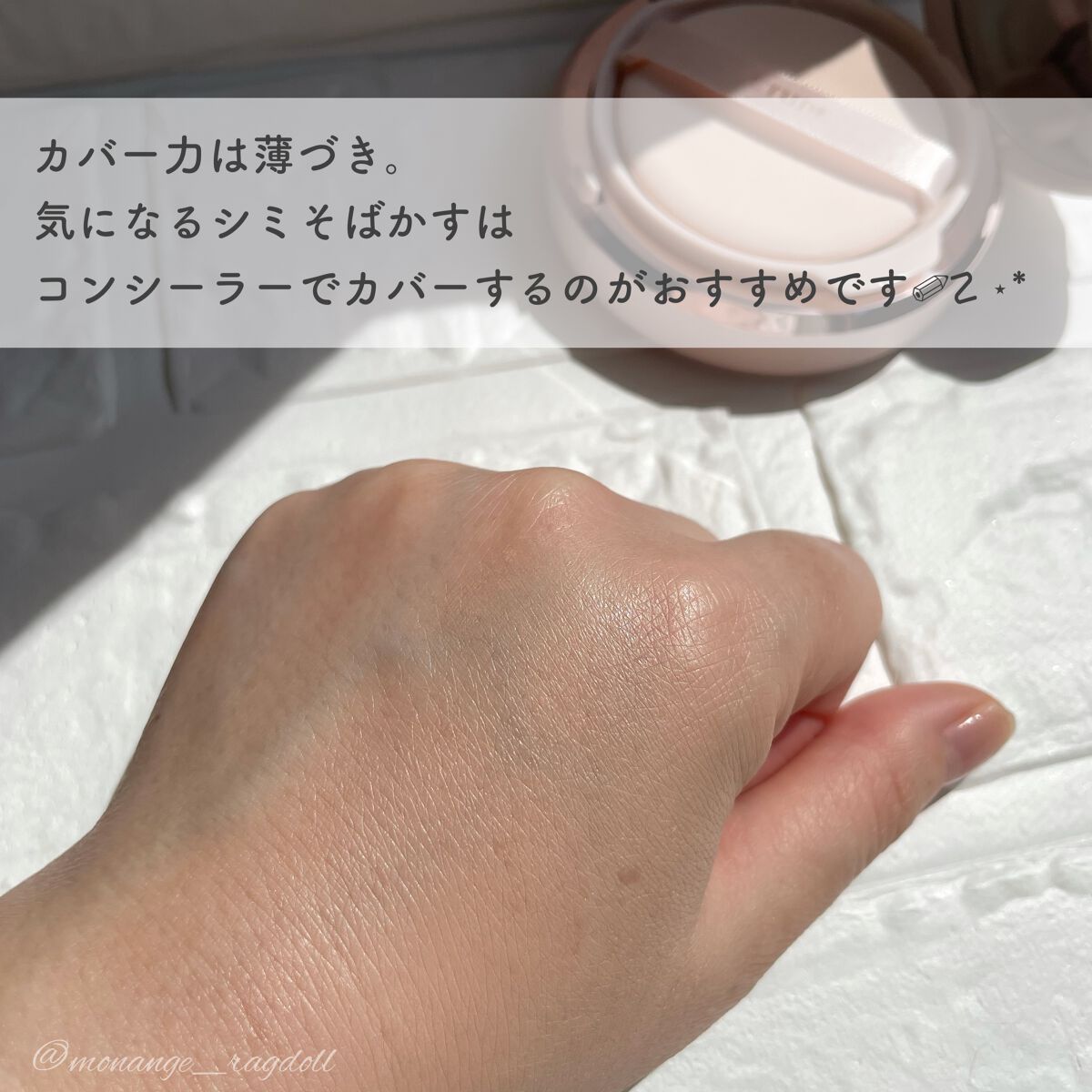 このクッションファンデリピ2回目❤︎"カバー力が凄いある訳じゃないけど、ピタッと密着する!ꪔ̤̮肌すごいキレイになる!!厚塗り感ゼロ!隠しきれないところは、コンシーラーで隠せば問題なし!結構肌は白い方ですが、1番明るい色がピッタリ合いました...