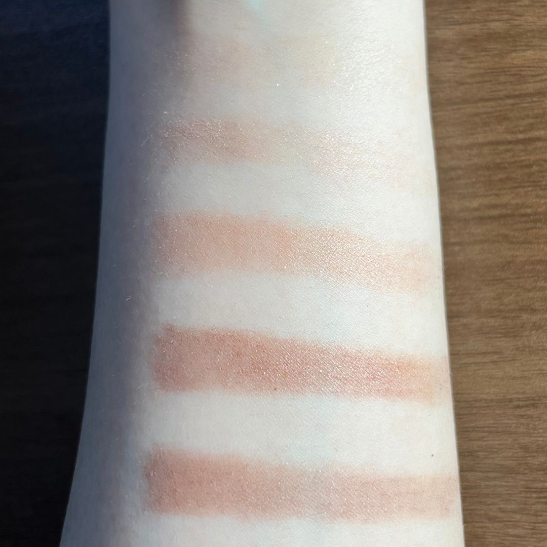 ブラウン系て使いやすいからこそ今まであまり手に取って来なかったけどこのパレットは左上のカラーとラメが絶妙で涙袋にぴったりだし左下の赤みがかったカラーもキレイだし右上のカラーはほんのりピンクっぽさも感じるカラーでピンクメイク大好きな私、泣いて感動💓笑 このパレットの真ん中のラメはベージュベースに多色ラメが入ってて動く度にキラッとツヤっとしてかわいいよ🫶