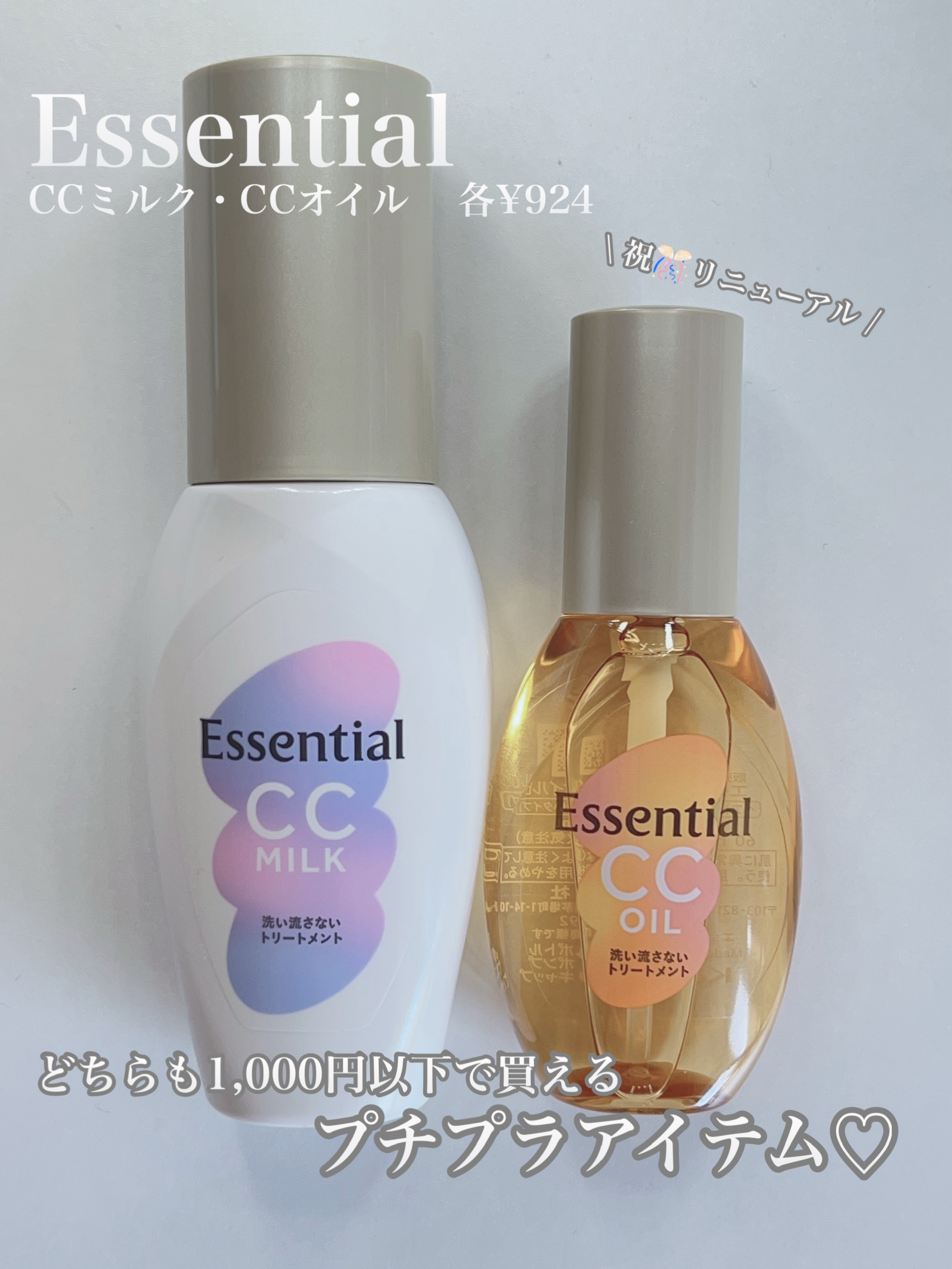 リニューアルしたエッセンシャルの実力は?/剛毛・多毛の私が本音レビューします❤️🔥参考になったな〜と思っていただけたら、ぜひいいねやコメントお願いします🙇♀️────────────⚫︎エッセンシャルCCミルク ¥924(税込)私の髪質とは相性が良くなくて、保湿力が足りない印象🤔これ単体だと広がりやすい気がする…ミルクなんだけどサラサラ質感なので、重めのミルクが苦手な方とは相性が良いかも!・ ・ ・⚫︎エッセンシャルCCオイル ¥924(税込)こちらはリニューアル前にかなり愛用していたのですが、リニューアルされて初めて買ってみました!期待していたのですが、保湿力はそこそこ🤔悪くはないけどめっちゃ良いわけでもない…笑正直リニューアル前の方が好きかも💦────────────総じてそんなに推せないかな〜どちらかを買うなら剛毛・多毛さんはCCオイルがまとまりやすくていい…!#エッセンシャル#ヘアミルク#ヘアオイル#剛毛#ヘアケア#プチプラ