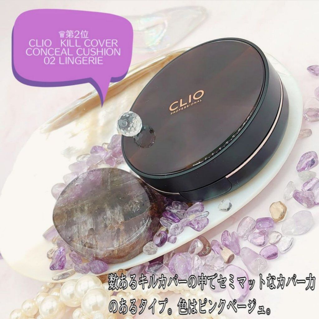 CLIOキルカバーコンシールクッション02LINGRIEカバー力のよさにびっくり!毛穴も簡単に隠れるし肌のくすみ全然気にならない😻けどマスクするとよれやすいかな…😔...