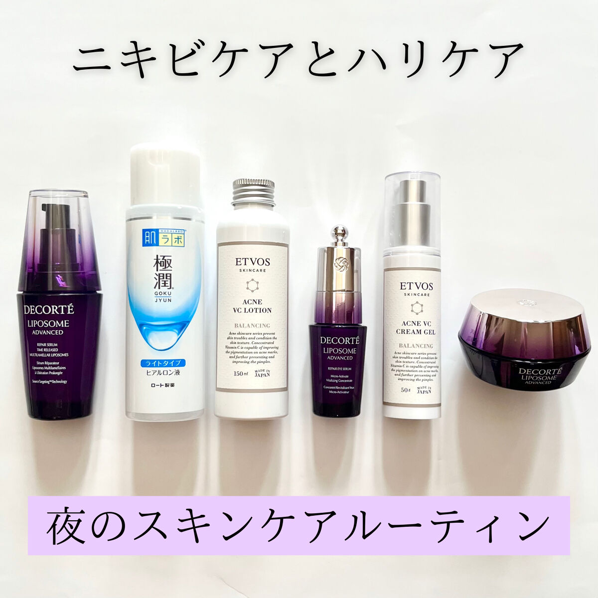 【混合肌のスキンケアルーティン】しっかり保湿はしたいけど、油分が多いアイテムを使うとニキビができる、、そんな私のスキンケアルーティンです。毛穴を詰まらせずに保湿する!という気持ちです❤︎DECORTÉリポソームアドバンストリペアセラム→朝晩洗顔後になじませるだけで24時間うるおいをキープしてくれる導入美容液。後肌はモチモチしますがなじむまで少し時間がかかります。いろんな肌悩みにアプローチしてくれるところ、オイルフリーでニキビができやすい私でも安心して使えるところが好きです❤︎肌ラボ極潤ヒアルロン液ライトタイプ→キメを整える、水分量アップのためにはやっぱり化粧水です。私がこのアイテムを選んでる理由はみずみずしい使用感とオイルフリー処方です。コットンでパッティングするので惜しみなく使えるプチプラを選んでます!プレ化粧水メインです❤︎エトヴォスセラミドスキンケア薬用アクネVCローション→極潤で肌に水分をたっぷり与えた後にニキビ跡が気になる頬などを中心にVC化粧水を重ねづけしてます。こちらもオイルフリー処方です!❤︎DECORTÉリポソームアドバンスト リペアアイセラム→最近は春の飛散物の影響か目周りのカサつきがすごく、困ってます。特に目周りの皮膚は頬の1/3程しかないのでしっかり保湿をすることで乾燥小じわも防げます。アイクリームだとベタつきを感じる方も、こちらはセラムなのでスーッとなじみベタつきにくいです!❤︎エトヴォスセラミドスキンケア薬用アクネVCクリームジェル→肌アレを防ぐためにオイルフリーに変えたものの、乳液の使用を辞めるとカサつきが、、、そんな時に出会えた、オイルフリーのクリームです。油分で毛穴が詰まりやすい私でもニキビにならずしっかり保湿ができるクリームでした!❤︎DECORTÉリポソームアドバンストリペアクリーム→+3時間寝たような肌にしてくれると話題のリポソームのクリーム。私は目周りを中心になじませてます。肌がふっくらする印象です!#スキンケアルーティン#ニキビ予防#毛穴ケア#私の上半期ベストコスメ2023#正直レビュー#揺らぎ肌ケア