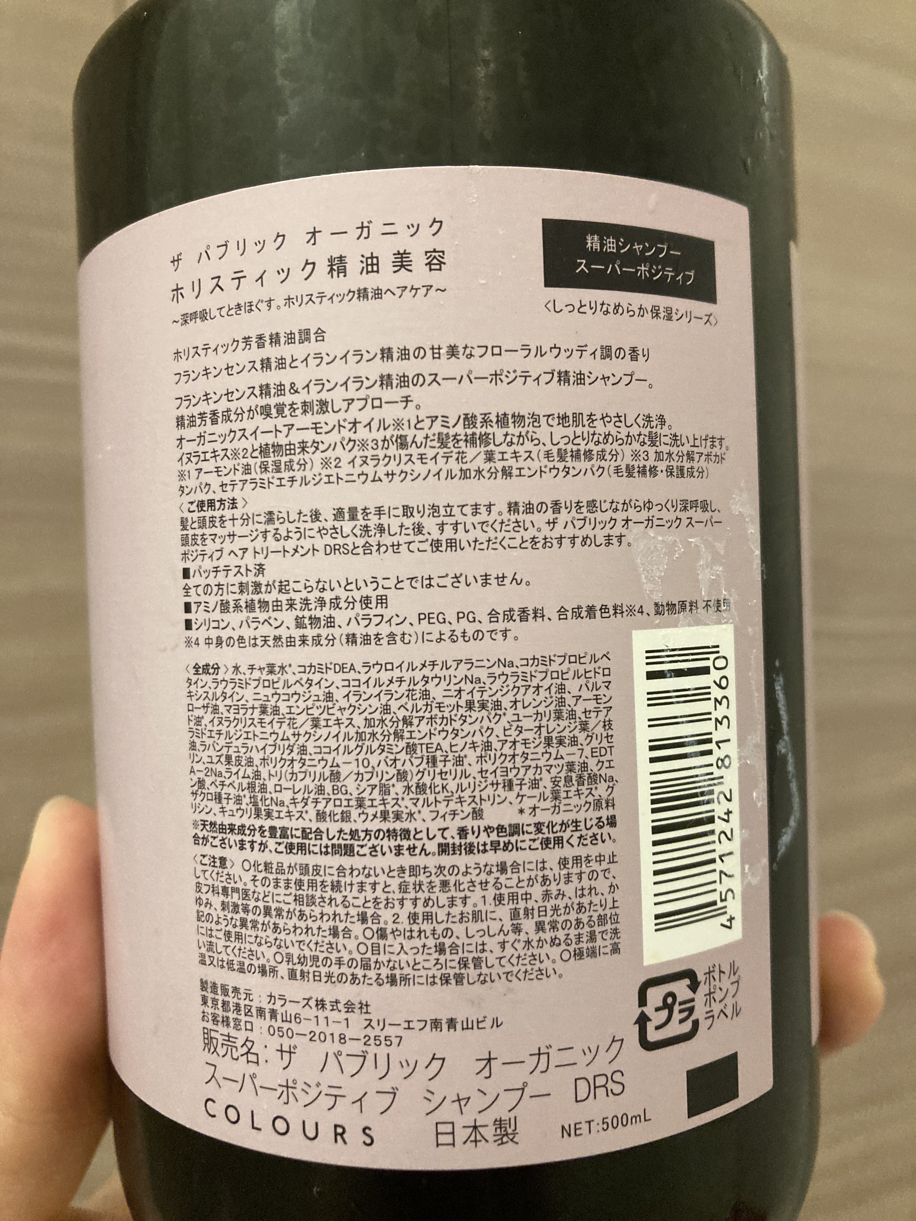THEPUBLICORGANICスーパーポジティブシャンプーDRS初めて使用してみましたシャンプーの泡立ちは⭕️です香りはオーガニック系の香りですが、好みが分かれそうハーブ感がとても強いです洗い上がりもさっぱりで、髪が特に軋む感じはありません...