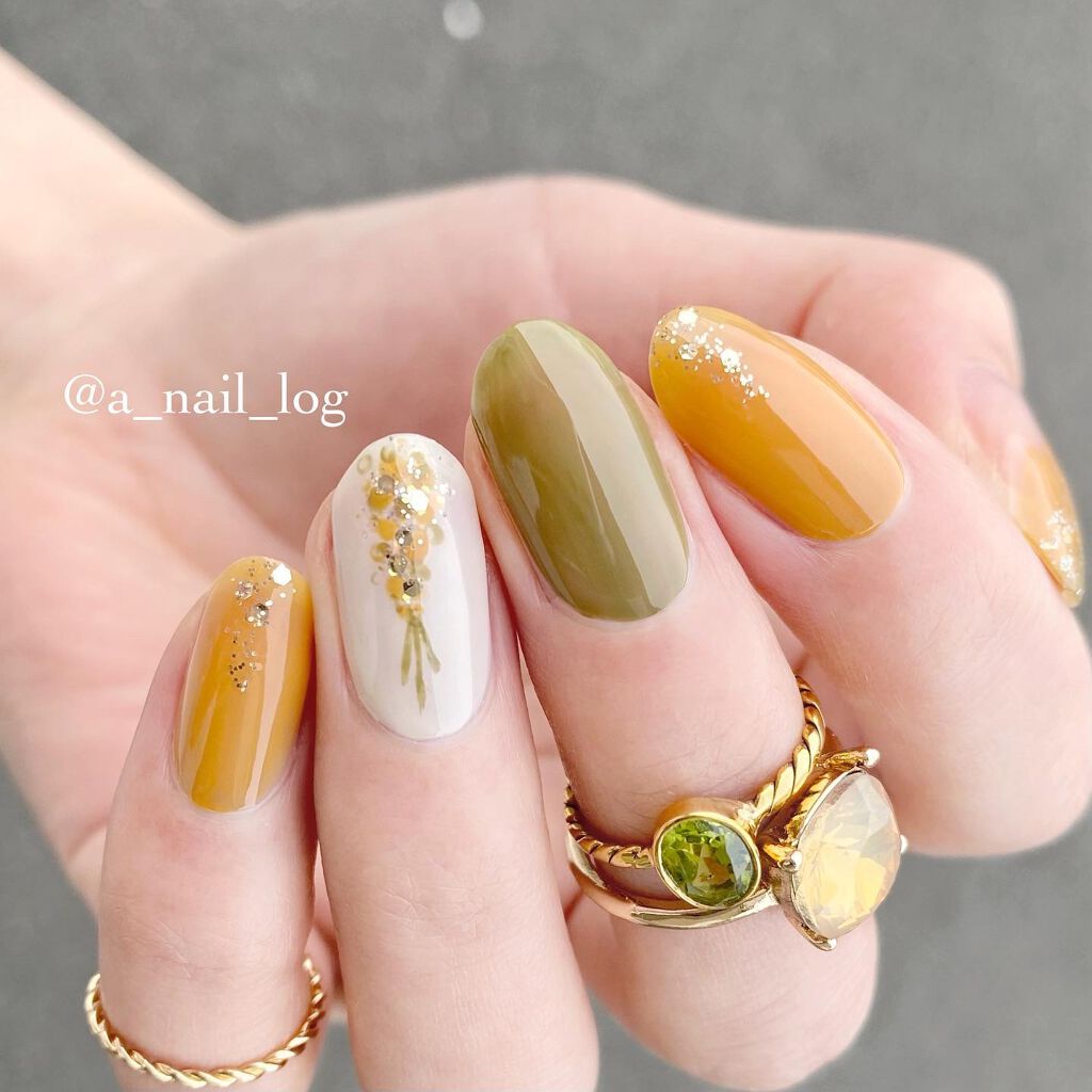 昨日インスタとTwitterに載せたミモザネイル🌼🌿アンバサダー特典で選ばせていただいたオハナ・マハロの026と027をメインに使いました✨難しいことできないのでとにかく簡単に😂親指はササッと塗りかけで他は基本ベタ塗り、薬指だけ爪楊枝を使ってミモザブーケ風にしました💐ㅤㅤㅤ■オハナ・マハロOH-017OH-025OH-026OH-027■ACネイルエナメル010ゴールドグリッターㅤㅤㅤ#セルフネイル#セルフネイル部#ネイル#マニキュア#ポリッシュ#春ネイル#ミモザネイル#イエローネイル#マスタードネイル#ブーケネイル#ohanamahaalo#オハナマハロ#オハナマハロネイル#セルフネイラーさんと繋がりたい#ネイル好きな人と繋がりたい#