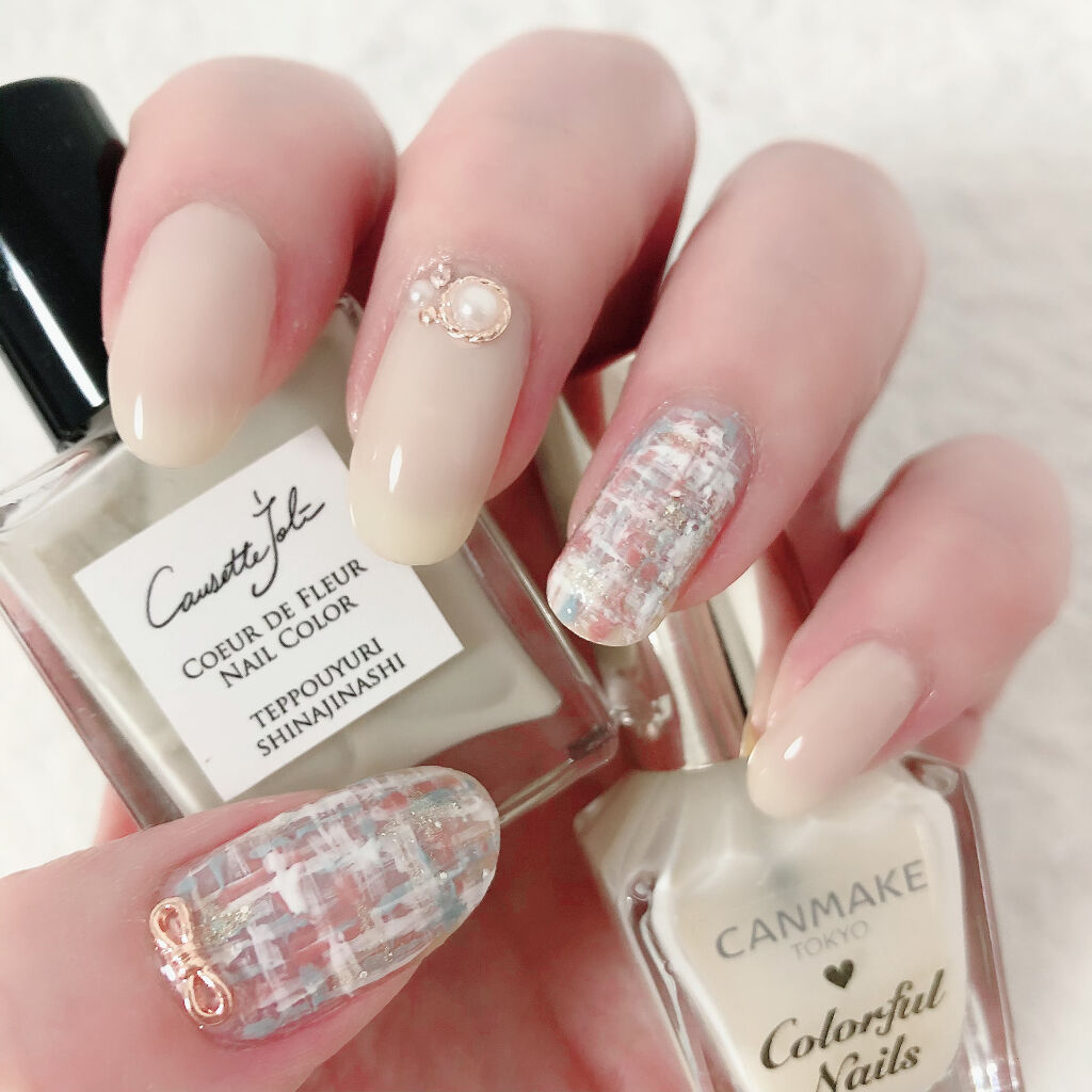 Causette.Joliのおすすめネイルカラーまとめ現在コゼットジョリのネイルは全部で14本持っています。そのうち限定カラーが7本です。結論、コゼットジョリの限定カラーは毎回チェックしてください。今も限定カラーが出ていますが、抹茶と黄色ですね…私には似合いそうにない…でも毎回限定カラーが本当に可愛いのでチェック😍コゼットジョリのネイルは基本的には大変塗りやすいです。程よいとろみ感とシアー感があります。シアー感やとろみ感があるのに塗った時に全く村になりません。また、少し傷つけてしまった!と言う時でも乾く前なら色を少し足せばなんの凹凸もなくしっかり修正できます。1週間くらいはもちます。そして何より、トップコートが素晴らしいです。2、3日はほぼ傷がつかないし、ぷっくりするし、かなり優秀です。トップコートだけでも試してみてほしいです。今回はまだ購入できるカラーから、何本かお勧めしたいと思います。①SHAKUYAKUTANREIしゃくやくたんれい誰もが大好きなローズピンク綺麗に発色します。画像だと3枚目のカラーです。このカラーだけ質感が他と少し違うかも。コゼットジョリを選ぶ時に第一候補にしてほしいカラーです。②SAKURASOSOさくらそそ名前の通りの桜ピンクカラーです。春にめちゃくちゃ重宝します。くすみピンク系のお色なので、可愛らしくなりすぎないのも良いです。おそらくシバザクラカレンというカラーと似ていると思うのですが、インスタなどでみる限りサクラソソの方がピンクよりなのかな?と思います。オフィスにもおすすめ派手ではないので万人受けするのでは?③HAGITAOYAKAはぎたおやかラベンダーカラーです。画像7枚目のようにRMKのエアリーブルーと合わせて紫陽花ネイルにできたり、画像1枚目のようにキャンメイクのミルクシロップと混ぜてニュアンスネイルにしたり、濃いめのパープルと合わせて秋ぽくしたり、一年中重宝するカラーです。めちゃくちゃおすすめです。④TSUKUSHINBOTENREIつくしんぼてんれいこのカラーがコゼットジョリの中で一番好きなカラー。カーキ、グリーン系のネイル少し厳しいかなと言う方でも違和感なく使っていただけるグリーンです。一度塗りで透け感あり、2度塗りしても派手に発色しません。大好き。どちらかというと、春から秋前くらいまでのカラーかなと思いますので、今買うならこのカラーがおすすめです。グリーン系押し花と合わせても可愛いですし、ピンクとも相性がいいので、サクラソソとペアで使っても良いです。ニュアンスネイルにもしやすいカラーです。ただしグラデーション作るならもう一個濃いグリーンを用意したほうが良いです。⑤NADESHIKOYASASUGATAなでしこやさすがた王道ピンクです。可愛らしすぎるので使いにくい方もいるかもしれませんが、私は好きです。MOMOURUWASHIももうるわしも持っていますがMOMOURUWASHIももうるわしより、ブルーよりのピンクです。MOMOURUWASHIももうるわしはもっと派手なピンクになります。正直ほとんどつかっていません。他のカラーについて①NATSUKUMOEIEIなつくもえいえい綺麗な水色カラーで、発色も良いので、水色ネイルやりたい!て時はおすすめです。ただし、何故かこのカラーだけ匂いがすごい変…昔からあるカラーと最近でたカラーと、質感がちがうのが気になりますね🤔この冬は、ピンク✖️水色のツイードネイルを作る時に重宝しました。他のブランドの水色だとどうしても色がはっきりでないので、このペンキみたいに発色する水色が大変使いやすかったです。②RURIKARAKUSAENZENるりからくさえんぜんブルーグリーンのようなカラーです。なかなか出番はないのですが、綺麗なカラーだと思います。また、新しくでた方のカラーなので匂いや質感は気にならないです。NATSUKUMOEIEIなつくもえいえいとはちょっと違った発色ではありますが2種で悩んだ場合はこちらをお勧めします。他にもグレー系やベージュ系ブラウン系もあるみたいですがまだ目を出してません☺️普段使いしない色は、paやキャンメイク、ネイルホリックなどのプチプラで十分かと思っていますので、コゼットジョリで買う予定は今のところありません。普段使いできるカラーを買うなら、コゼットジョリをおすすめします。見た目も可愛いし、色の名前も可愛いし、質感も良いです。少しお高めではありますが、同じ価格帯のネイルの中では1番優秀だと思います(エクセル、アディクション、ダズショップ、ジュミートウキョウ、などと比べて)気に入った色を何本か持つのが楽しいかもしれません。#セルフネイル#ネイル_比較