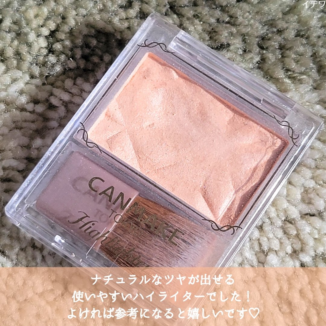 キャンメイクハイライターN01シルキーベージュずっと愛用しているハイライトです💕セザンヌのハイライトを使っていましたが、ギラギラしすぎる…な盛り耐性ない自分でも使いやすいです!厚塗りしても派手にならず、自然な艶感を保ったまま更につやっとするの...