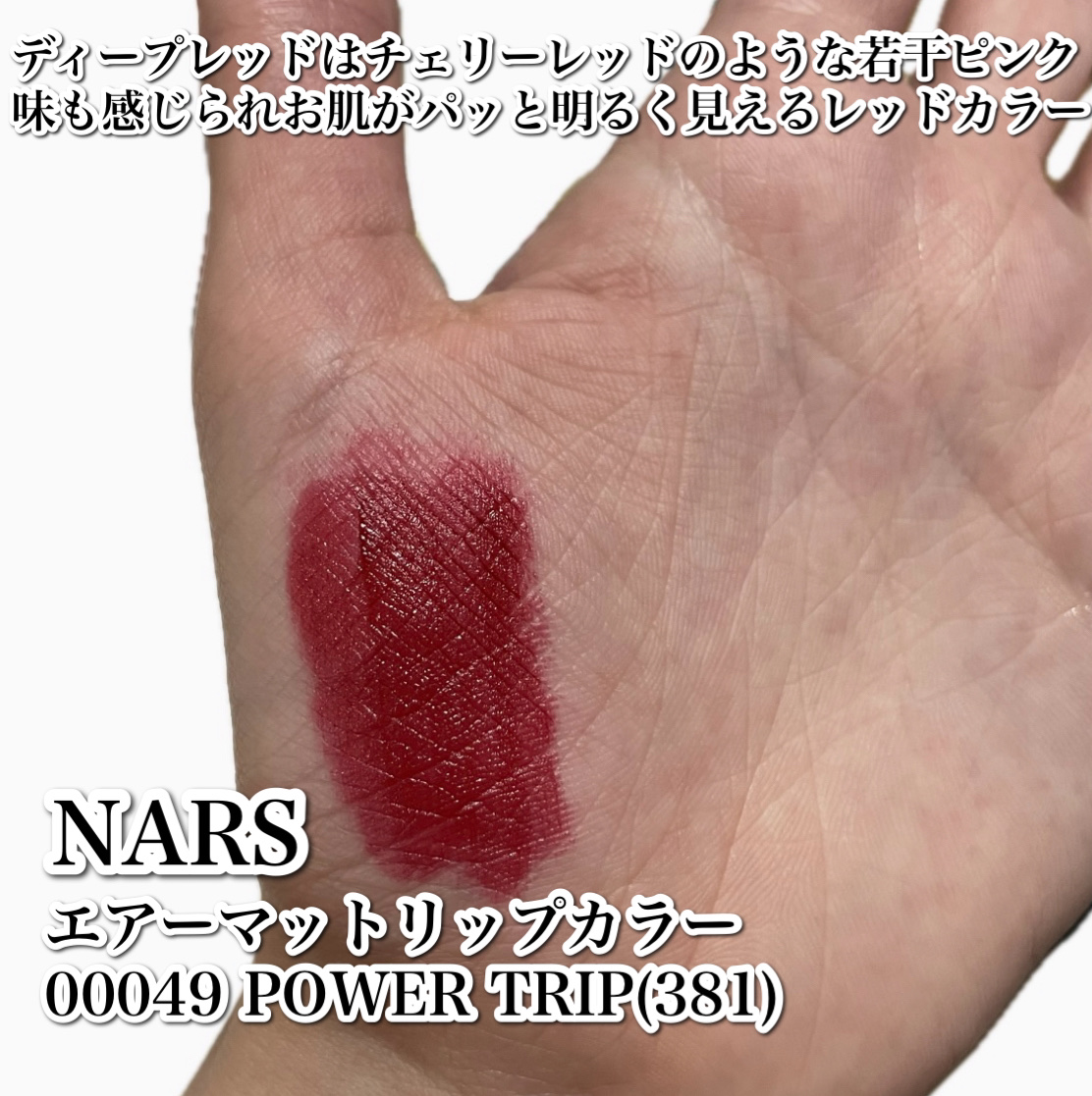 つけ心地が軽すぎるマットリップ💄□商品情報□ブランド名:nars商品名:エアーマットリップカラー00049POWERTRIP(381)ディープレッド販売価格:税込¥4,180-ディープレッドはチェリーレッドのような若干ピンク味も感じられお肌が...