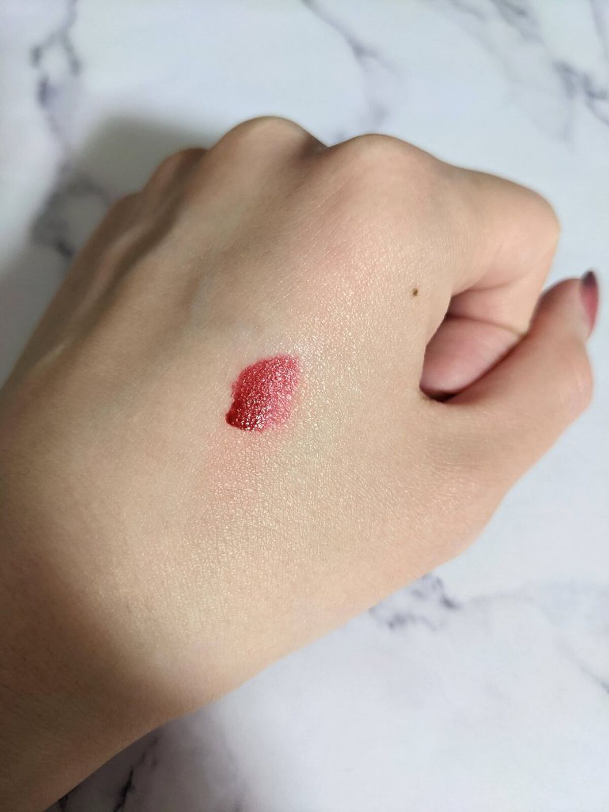 ふわりとぼかしたようなソフトマット質感。とにかく着け心地が軽い! マットで発色が良いので、ちょんちょんとアプリゲーターで唇にある程度のせたら指でポンポンぼかすのが肌馴染みしていいかも🤔