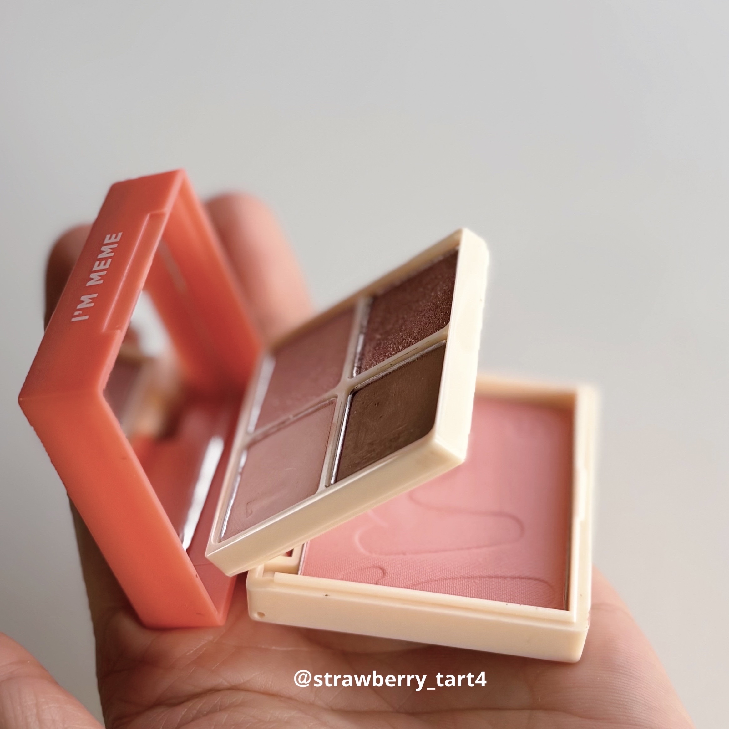コスメ最小限にしたい人必見〜〜〜🎼💞☝🏻今回はアイシャドウとチークが1つになっているコスメを見つけたので紹介します✨💕🩵i’mmemeアイムミミマルチキューブ001¥1,870🩵手のひらには収まるサイズ🎁✨私はドラッグストアで購入しました♡開けてみると、、1段目にアイシャドウ2段目にチークが入ってました‼️お弁当箱みたい(>ᴗ<)✨✨実際使って見た感じは1枚目の写真の仕上がりになりました〜💕💕アイシャドウ⇒粉飛びと発色が少し薄い点が気になりました🌀🌀★★★☆☆チーク💮⇒これはえ!こんな発色いいの?ってくらい綺麗に色付きました😍✨加工アプリで後付けしなくても良いくらい高発色です🐱💞★★★★★本当にチークは特大おすすめです❣️アイシャドウも使いこなせば使いやすい色味なので是非チェックしてみてください🤍🤍#i’mmeme#アイムミミ#コスメ購入品レビュー#アイシャドウ#チーク#コスメ#お気に入りコスメ#ピンクメイク#メイク方法#スウォッチ#コーラルメイク#韓国メイク#ピンクチーク