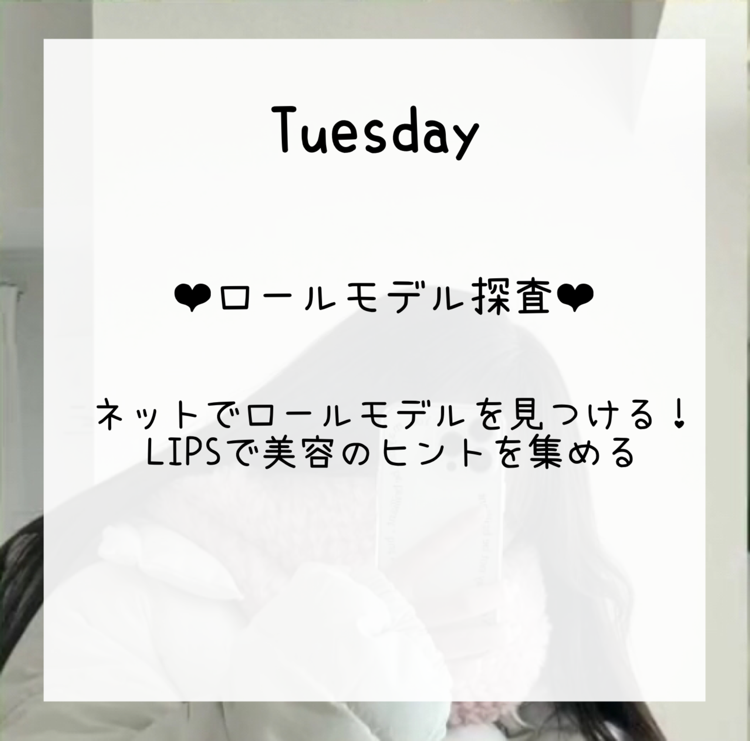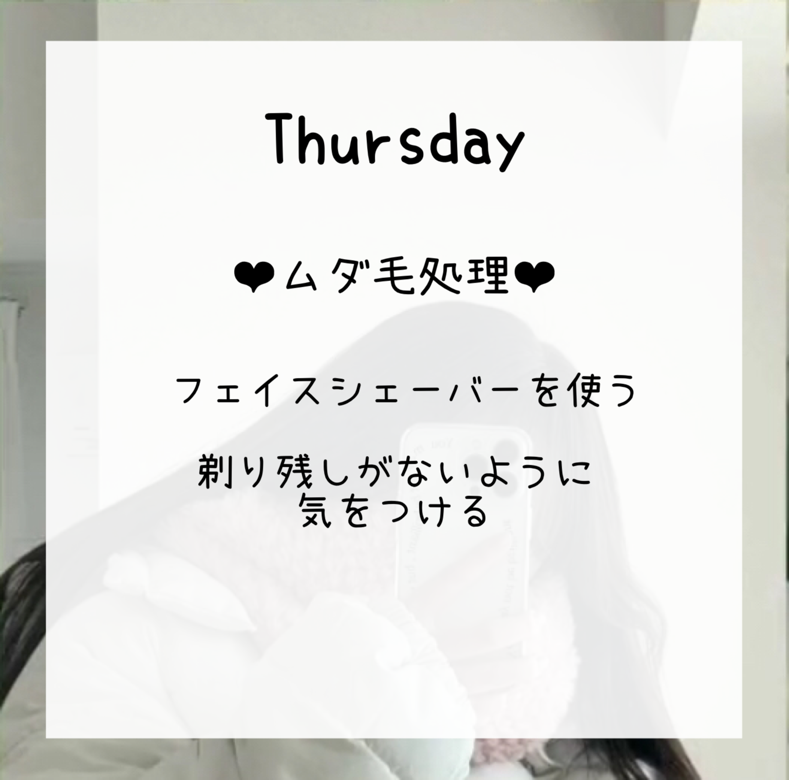 【1週間で垢抜け】はろーめうです🕊🫶🏻今回はのあとのコラボ企画!!1週間で垢抜けです♪〜〜〜〜〜〜〜〜〜〜のあの投稿も絶対見てね!!いいねと保存、フォローもしてあげて−!❤︎毎日すること❤︎マッサージとかストレッチは、毎日することで効果がでてくるものなので、サボらず毎日やりましょうw笑顔の練習は、鏡を見ながら、笑顔にするだけ!!鏡をたくさん見るだけでも垢抜ける💭むくみのとりかたは、この投稿の最後あたりに紹介するね!涙袋マッサージのやり方↓↓https://lipscosme.com/posts/6842438❤︎Monday❤︎前髪を整えるっ!!前髪を薄くすると一気に垢抜ける!!めうは、去年まで、前髪激重女だったんだけど、セルフカットでめっちゃ薄くなりました✨前髪は、川野明愛ちゃんを参考にしてます🔍めいあちゃん、まじで可愛い…//今日好きにでてたのを見て知りましたっ❤︎Tuesday❤︎ロールモデル探査ァァ!!(↑テンションバグってます すいません)インフルエンサーでもアイドルでも身近な人でも誰でもOK🙆🏻♀️めうはパーツごとにわけてます!前髪→川野明愛ちゃん顔→永野芽郁ちゃん、寺島季咲ちゃん、古園井寧々ちゃん生活(?)→みゅうちゃん、母子家庭一人っ子JKちゃんって感じ!!みゅうちゃんと母子家庭一人っ子JKちゃんは、YouTuberなので、YouTubeチェックしてみてくださいっめいあちゃんときさきちゃんと、ねねちゃんは多分全員高校生!!もしかしたらきさきちゃんは、大学生かも…。。ロールモデル診断とかもあるので、試してみてね!❤︎Wednesday❤︎デカ目マッサージ!・思いっきり目を瞑って思いっきり 目を開けるのを繰り返す・まぶたの血流(?)を指で流す・眼球を動かすめうはいつも、朝起きて、洗顔してスキンケアして、むくみとりをするときにデカ目マッサージを一緒にしますっむくみもとれて、超スッキリ✨❤︎Thursday❤︎ムダ毛処理~めうはパナソニックの、フェイスシェーバーを使ってます!!剃る場所↓↓顔全体(口周りは特に)指・手ひざ 腕めうは、人に見えないところは、極力剃らないようにしています🪒剃るのは結構肌への刺激が強いので、、、冬は、肌の露出が少ない分、剃るところも少なくしてますっよく忘れがちなのが、指!!めうは、手は剃ったのに指を忘れてた!!なんてことが多々…💦ひざはめっちゃ剃りにくい><綺麗に剃れる方法、誰か教えてェェ−❤︎Friday❤︎自分に向き合うっめうの場合はこの日は自分に向き合う日とかは決めてないんだけど、そのかわり、毎日そういう時間をつくってます!その時間のことについては、また投稿しますっ❤︎Saturday❤︎クレンジングパックッッまじで毛穴なくなる🙌🏻やり方は下のURLを見てね↓↓https://lipscosme.com/posts/6889976めうは顔だけじゃなくて、手にもやってますっお風呂でお湯につかりながらやると、よき👌🏻乳化させると効果up⤴️❤︎Sunday❤︎トリートメントパック🫰🏻やり方説明しますっ⒈シャンプーのあと水気をしっかりきる⒉トリートメントを全体に塗布し、馴染ませる⒊バスコームでとかす⒋2分間放置⒌洗面器にお湯をいれ、そこに髪をつけて、 しっかりめに乳化させる⒍バスコームでとかす⒎1分間放置⒏流し残しがないように、しっかり洗い流すこんな感じ−めうは、毎週日曜日にやります!!今日も日曜日なのでやる予定✌🏻むくみのとりかた⒈中指で耳の下を押す⒉人差し指と親指でフェイスラインをつまむ⒊首のリンパをながす↑↑この3つを朝の洗顔後のスキンケアの 時にやったらめっちゃむくみとれますわからないとことか、詳しく知りたいことがあれば、コメントで教えてください🙌🏻垢抜けに関する、おすすめの投稿↓↓顔のくすみ https://lipscosme.com/posts/6813841目の下のクマ https://lipscosme.com/posts/6786174垢抜けるためにやったこと https://lipscosme.com/posts/6743679朝の習慣 https://lipscosme.com/posts/6561227夜の習慣 https://lipscosme.com/posts/6563135のあへコラボしてくれてありがとう🫶🏻のあは、結構最近LIPS始めたばっかだと思うけど、フォロワー様もいっぱいいて、まじで尊敬する…✨めうがフォローして、憧れ様の、のあがフォロー返してくれて、コメントしてくれたときはめっちゃ嬉しかった!!(これガチ)のあのコスメレビューもタメになる💭っていうか、のあの投稿って全部タメになる!!のあと出会えてよかった🫰🏻大好き❤︎〜〜〜〜〜〜〜〜〜〜#1週間で垢抜け-----❤︎、💬、お願いしますまたね