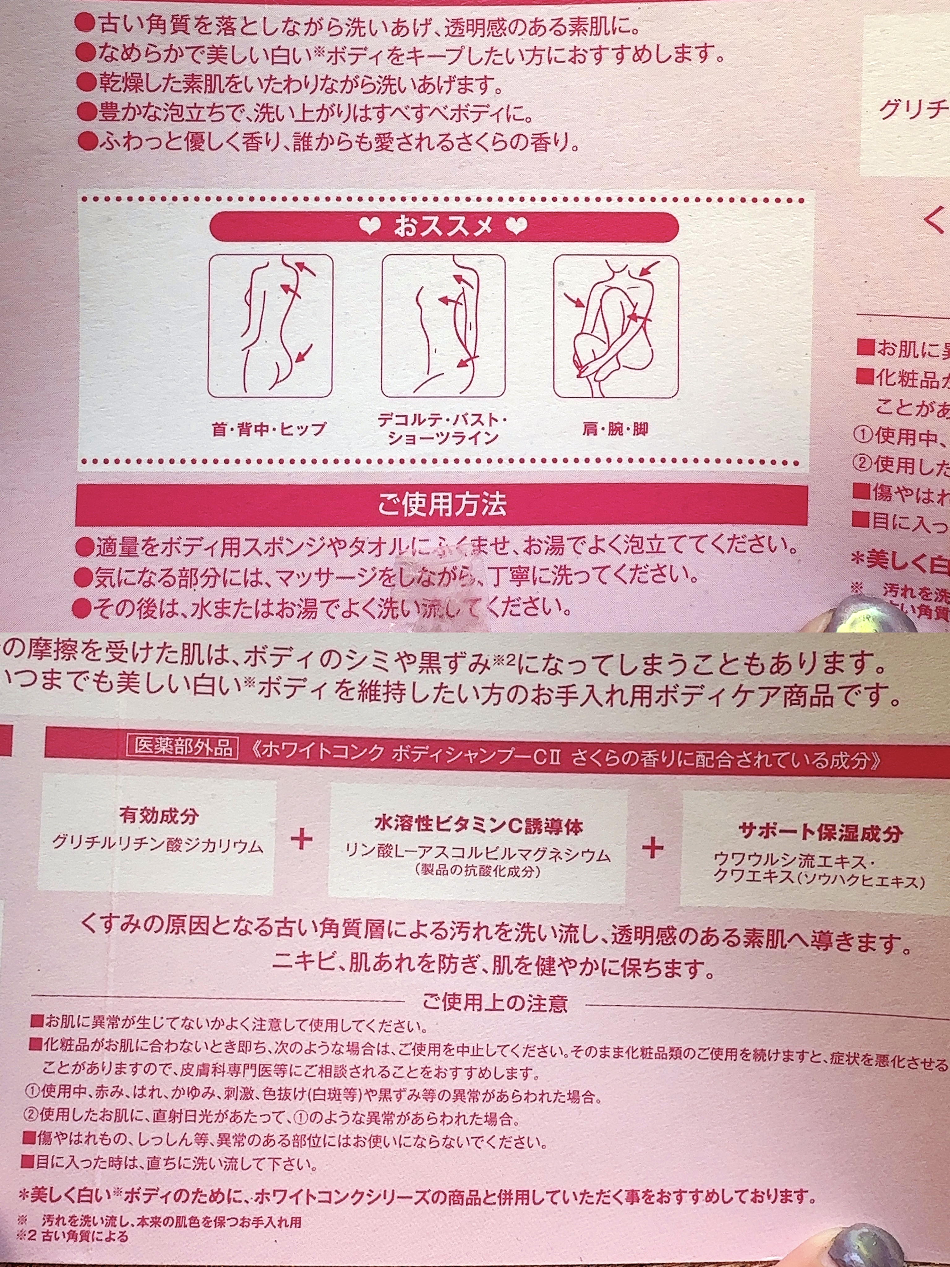 〔ホワイトコンク〕春季限定さくらの香りが数量限定で登場。❀·̩͙//𓂃𓈒𓏸✧︎𓂃𓈒𓏸✧︎𓂃𓈒𓏸✧︎𓂃𓈒𓏸✧︎𓂃𓈒𓏸✧︎𓂃𓈒𓏸✧︎𓂃𓈒𓏸ホワイトコンク薬用ホワイトコンクボディシャンプーCII600mlさくらの香り¥1595𓂃𓈒𓏸✧︎𓂃𓈒𓏸✧︎𓂃𓈒𓏸✧︎𓂃𓈒𓏸✧︎𓂃𓈒𓏸✧︎𓂃𓈒𓏸✧︎𓂃𓈒𓏸ホワイトコンクシリーズ人気No.1👑乾燥した素肌をいたわりながら洗い上げる"ボディシャンプー"は、メラニンを含んだ古い角質をきれいに落とし、透明感のあるすべすべ素肌に導いてくれます♡グレープフルーツもゆずも爽やかで気分転換できる香りで好きだけど、さくらの香りは優しいふんわりとした甘いお花の香りで女子力上がりそうな香りで良し🌸✨️そして、パケ超絶可愛いのだ(ᐡɞ̴̶̷̫ɞ̴̶̷ᐡ)7本目がそろそろなくなりそうで、8.・9本目とまとめ買いました😍#リピート買いアットコスメで600mlの取り扱いが始まったので、さっそく購入!やっぱり600mlのほうが使い勝手が良いので、これからは入試便利なアットコスメで大容量ホワイトコンクは購入します😉💕#kingyoとUVケア#ホワイトコンク#薬用ホワイトコンク#ボディシャンプーCII#さくらの香り#フォロバ100#最新日焼け止め事情