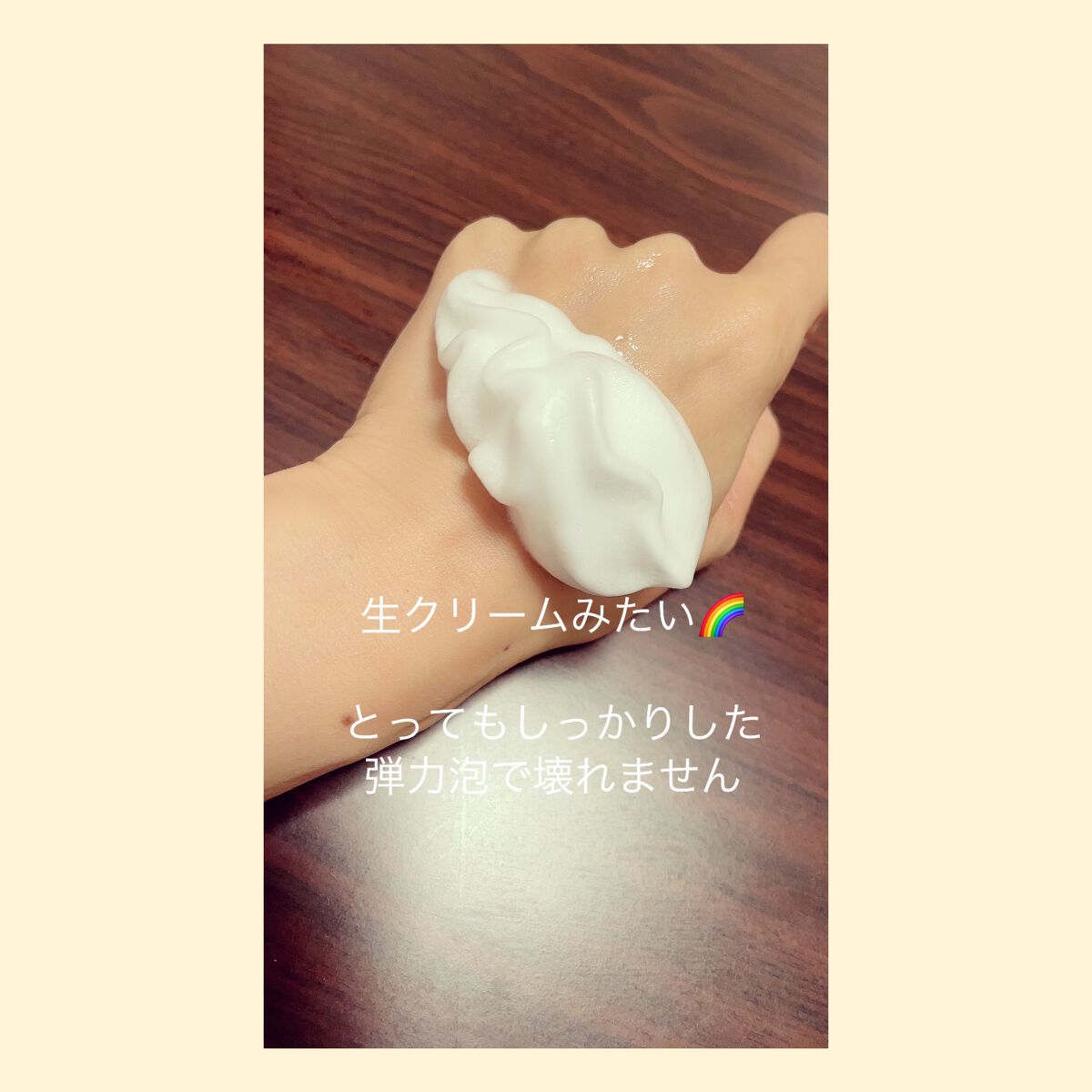 □生クリーム泡のボディソープ(写真2枚目)本当に生クリームを絞ってツノが立つような泡になっているなと感じます☺️泡で出てくるから、一回のプッシュ量が6〜10回で使用量は割と多めです。私的には6プッシュの量では物足りないと感じます😣コスパも悪いのかな?もう少し少ない量で気持ちよく洗えたら嬉しいですね☺️ □濡れた肌に使うボディ乳液クリームは重たすぎず、濡れている肌でもスーッとつけることができて、しっとりしてくれます✨身体を拭く前に使えるから、これから来る冬の季節にはとってもありがたい🙏冬の脱衣所はどうしても寒いから、身体を拭いてボディクリーム付けるの苦手なんです😫それにお風呂場で乳液を付けれるなら、「乾燥しちゃうー!」って焦る必要もなさそうですね😚