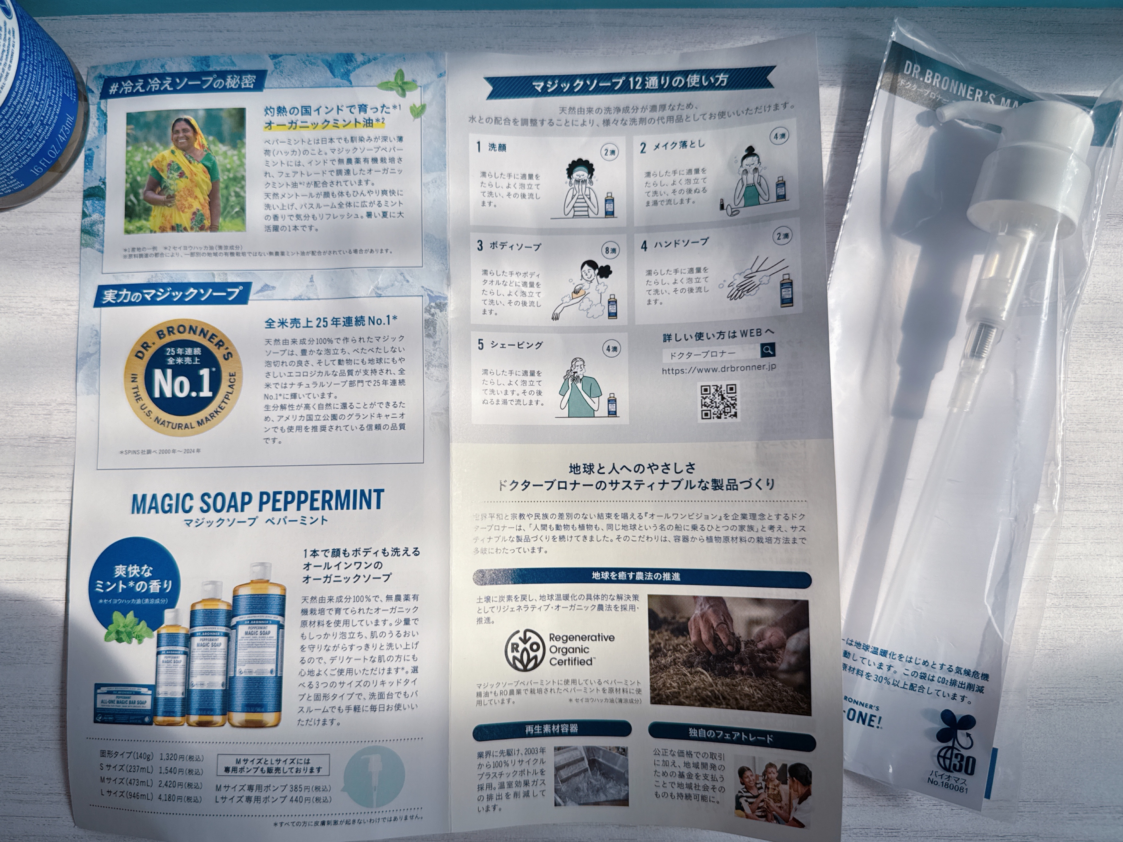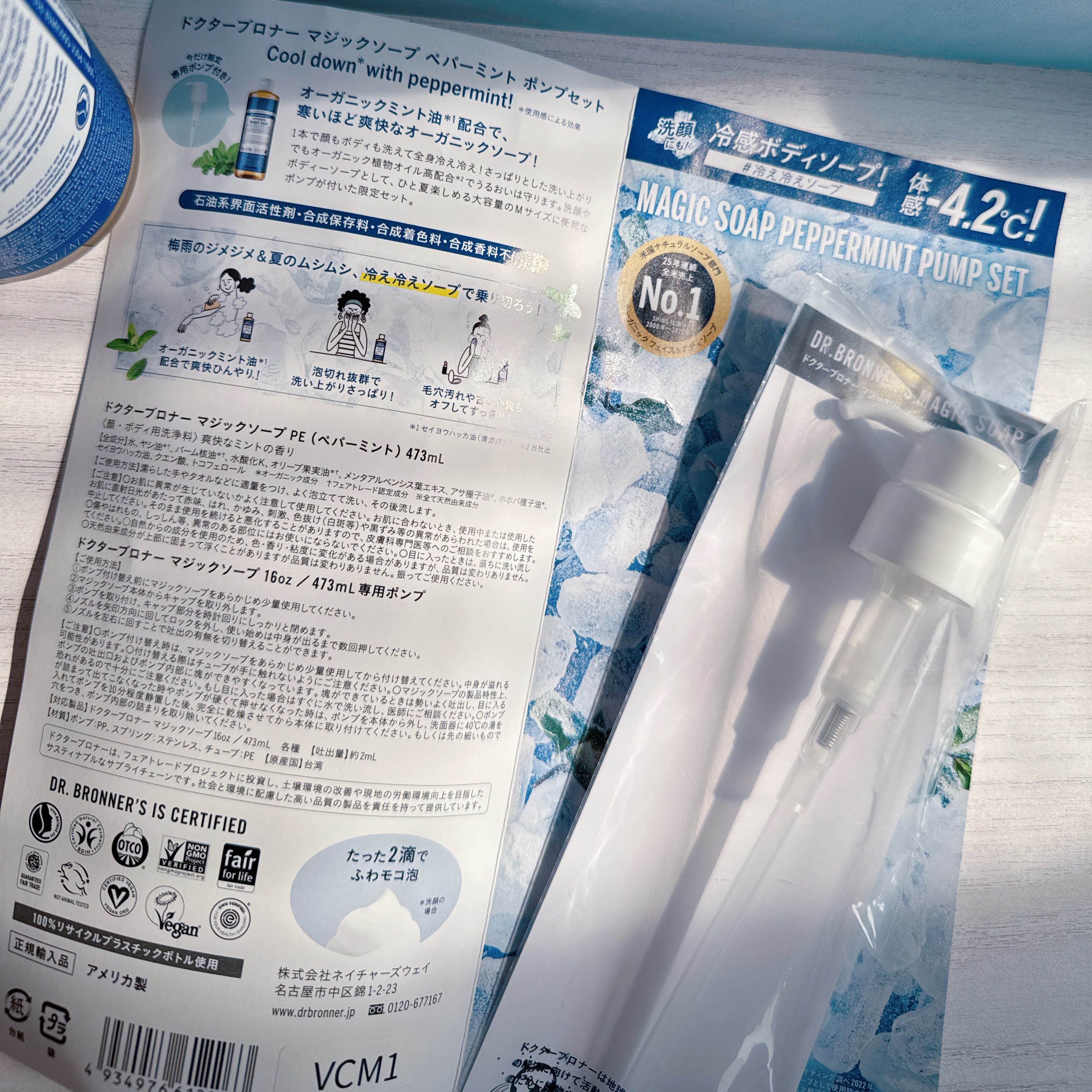 DR.BRONNER'Sマジックソープペパーミント体感-4.2℃!!!お風呂上がりエアコンいらずの爽快感ヒエヒエソープ梅雨のジメジメのときや猛暑をクールで乗り切るペパーミントはオーガニックペパーミント油の冷え冷え泡で汗のベタつきや皮脂汚れもクールでスッキリこだわりの植物おいる配合オーガニックヘンプオイル、オーガニックホホバオイル、オーガニックココナッツオイル、オーガニックオリーブオイル肌の柔軟やハリを与える、肌を整える、肌の方でも乾燥や肌荒れなども防いでくれるまた、肌に優しい9つのフリー処方使い方は全部合わせて12通りの使い方洗顔、ボディソープ、メイク落とし、ハンドソープ、シェービング、食器洗い、食べこぼしのお洗濯、布小物のお洗濯、メイクツールのお手入れ、野菜、果物洗い、お家のお掃除、犬用シャンプーとしても使えるよ!アウトドアが好きな方やマルチに使いたい方におすすめ。ちなみに、メイク落としはダブル洗顔不要でマツエクしていても使えるらしい。使用感は爽快感のあるボディソープですっきりさっぱりの仕上がり泡立ちもよく泡立てやすいよサイズはS.M.Lとあるから使いたい大きさ選べる夏だけの数量限定品マジックソープペパーミントセットSサイズにミニサイズがついてくる!!5/1から公式オンラインストア、ロフトに先行発売5/22から全国発売なのでこの機会にチェックしてみてね。#PR#ドクターブロナーマジックソープ#マジックソープペパーミント#冷え冷えソープ