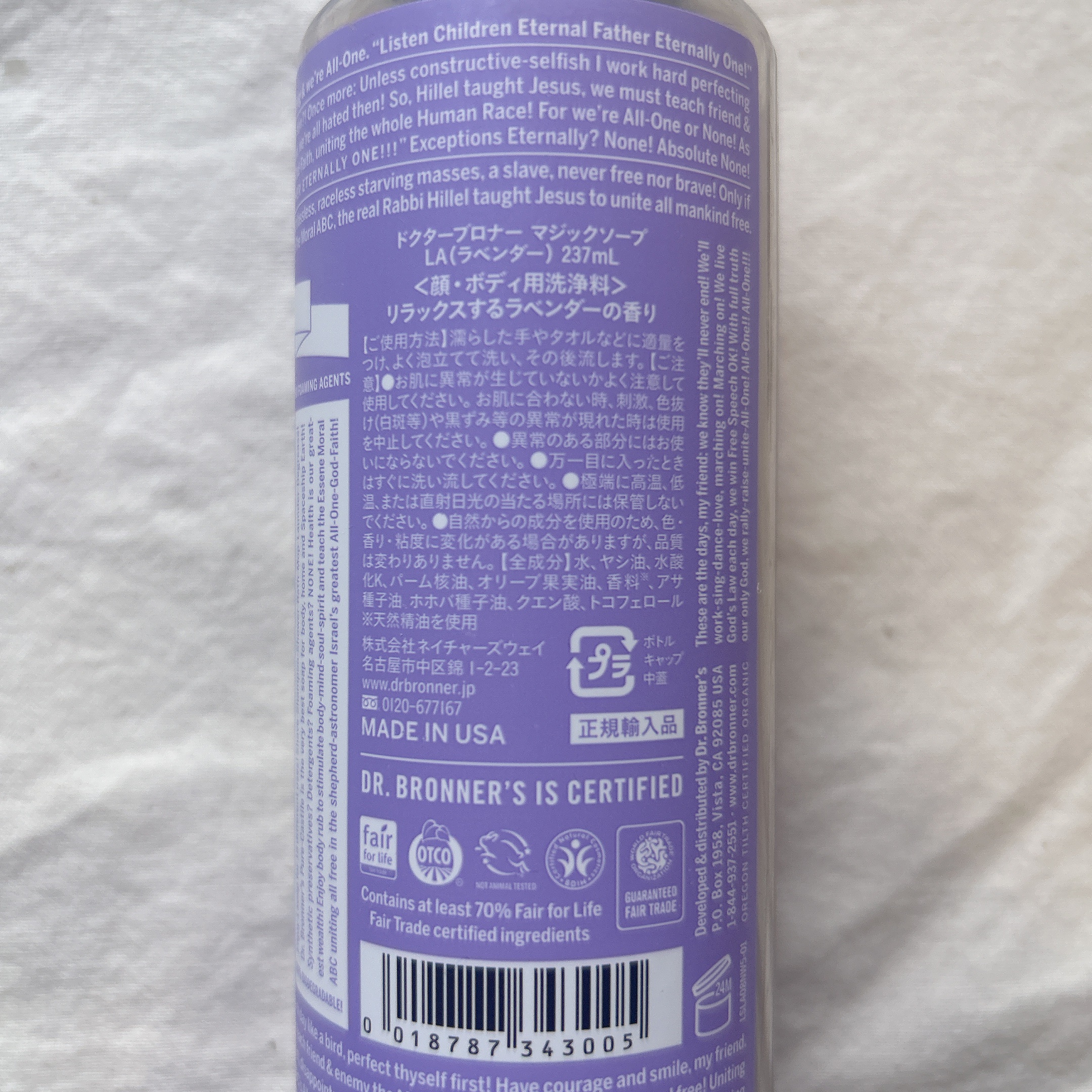 関連する記事ドクターブロナー マジックソープ ラベンダー 237ml