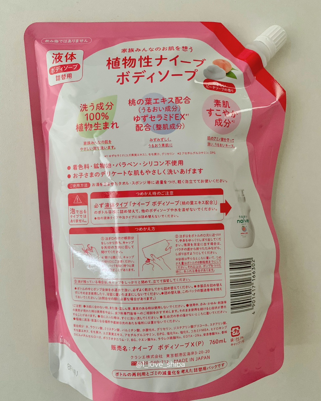 - リニューアル発売 桃の葉エキス(うるおい成分)配合:みずみずしく、なめらか素肌に。 洗いあがりまでここちよい、自然でやさしい桃の香り。 家族みんなの肌にちょうどいいサッパリ 「素肌すこやか成分※1配合」肌のアミノ酸を守って洗い、うるおいキープ。 「植物性アミノ酸系洗浄成分MIX※2配合」やさしい泡&さっぱりすすげて、すべすべの洗いあがり。 ※1:アセチルグルコサミン、DPG ※2:ココイルトレオニンNa,ココイルグルタミン酸2Na、ココイルグルタミン酸Na ・洗う成分100%植物生まれ ・着色料・鉱物油・シリコン・パラベン・アルコール(エタノール)不使用 ・お子さまのデリケートな肌もやさしく洗いあげます ・アレルギーテスト済み(すべての方にアレルギーが起こらないということではありません)