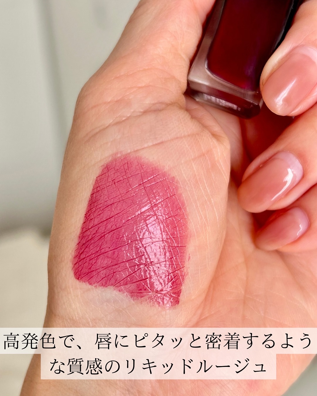 塗るだけで一気に華やかになるワインピンク🍷 お洒落なカラーで垢抜けます❤️🔥 オイル配合のリキッドリップで、塗った瞬間は艶々、時間が経つとだんだんセミマットの質感に🫧 ぜひチェックしてみてね💫
