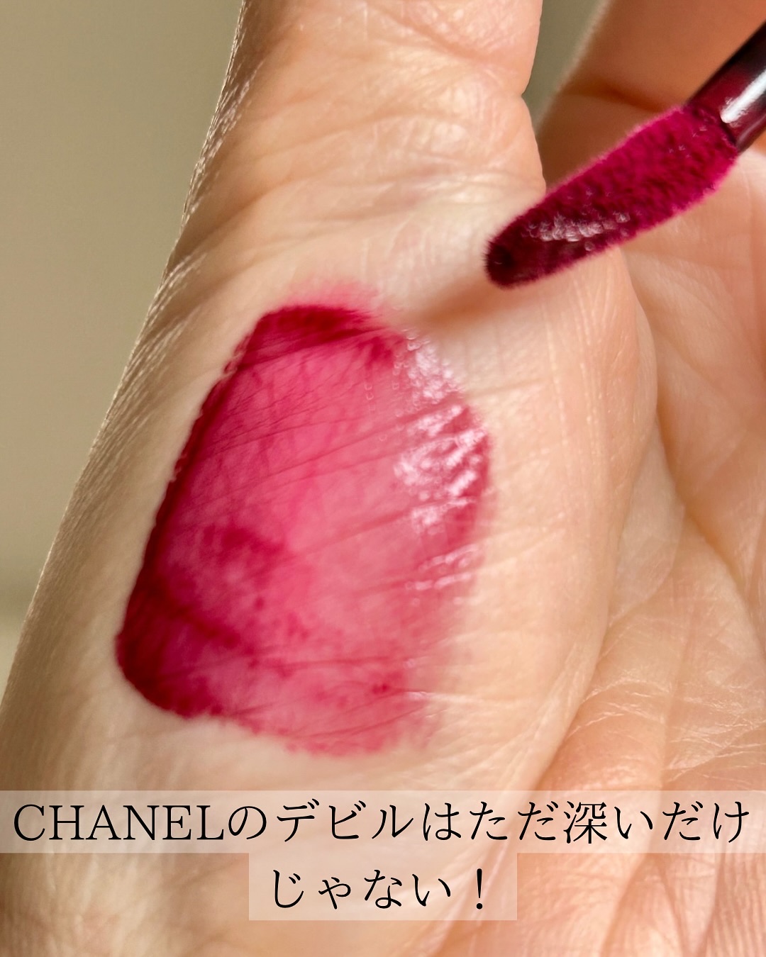 1stのクールウィンターにおすすめ💯 とご教示いただきさっそく帰り道に購入👛 CHANEL様、久々だぁ………✨✨ というお色味と発色に感動して手のひらでスウォッチ撮ったんですが……… くちびるに色ないとえ😰ってなるところを一気に蘇らせてくれます😊