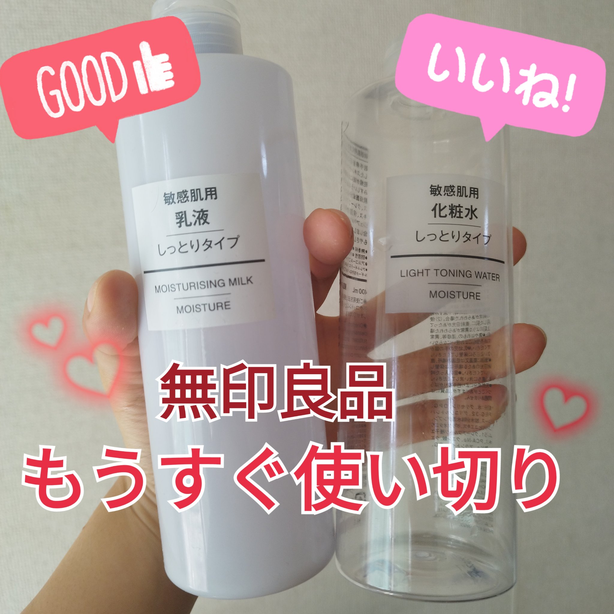 無印良品化粧水・敏感肌用・しっとりタイプ400ml今までは普通に使ってたのですが…極度の乾燥肌。敏感肌によるもの?なのか、荒れてポツポツ出来て水ですら痛くてヒリヒリ。その間は、敏感肌で乾燥肌用なのに全く使えない…。肌の状態が良くなってから、また使用再開になりそうです。#おもち肌スキンケア
