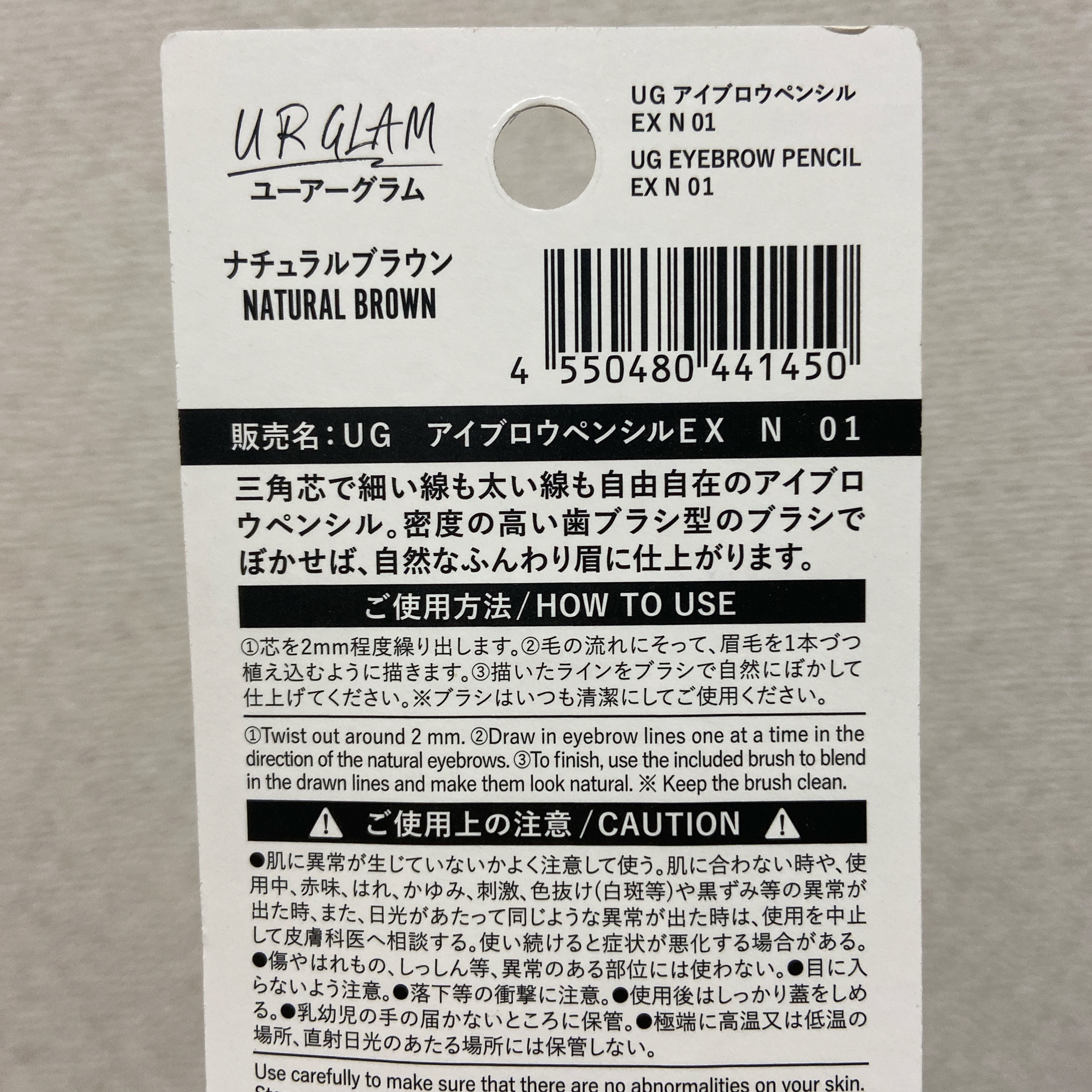 URGLAMEYEBROWPENCILEXユーアーグラムアイブロウペンシルEX01ナチュラルブラウン100均DAISO(ダイソー)で220円(税込)で買えます❣️よくSNSでも口コミを見ていたので、気になって買ってみました!ずっと探していたんだけど、中々置いてる店舗が見つからなくて、、人気で品薄なのかな😅両側にキャップがついていて、片方がペンシル、もう片方がブラシになっています。ペンシル部分は三角芯で先が尖ってるので、細い線も描けます。ブラシは歯ブラシのようになっていて、ボカシやすいです。普通こういうブラシってギザギザのやつが多いんですが、歯ブラシ型で柔らかくて肌触りがいいです🪥肝心のペンシル部分は細い線も描けるんだけど、どちらかというと太めに描く向きかなぁ💦あと結構茶色なので、今黒髪だからちょっと色が浮いちゃうかなって感じ🙄これは超個人的な理由だけど😂でもやっぱりめちゃくちゃ安いので、そう考えたらコスパいいし機能性も十分満足だと思う❗️安くて使えるアイブロウペンシル探してる方にオススメ🙌
