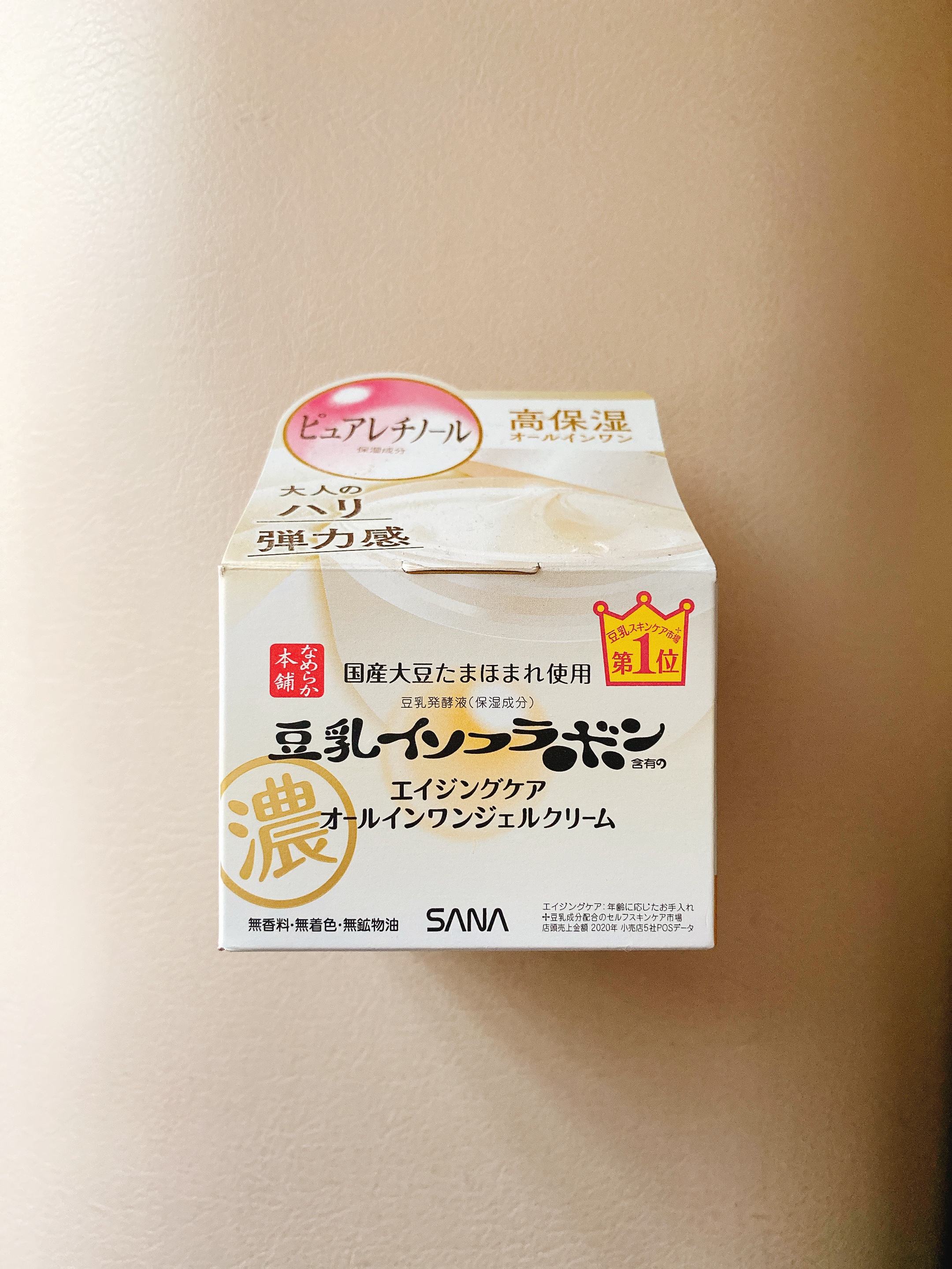 化粧水、美容液、乳液、クリーム、パック効果の5つの機能を時短にケア♡ なめらか本舗エイジングケアライン共通の滋賀県産丸大豆たまほまれ使用の豆乳発酵液に加え、ピュアレチノールを配合 乾燥肌の私はこれだけでも保湿力を感じました✨ 夏だけでなく、冬も使いたいアイテムでした!
