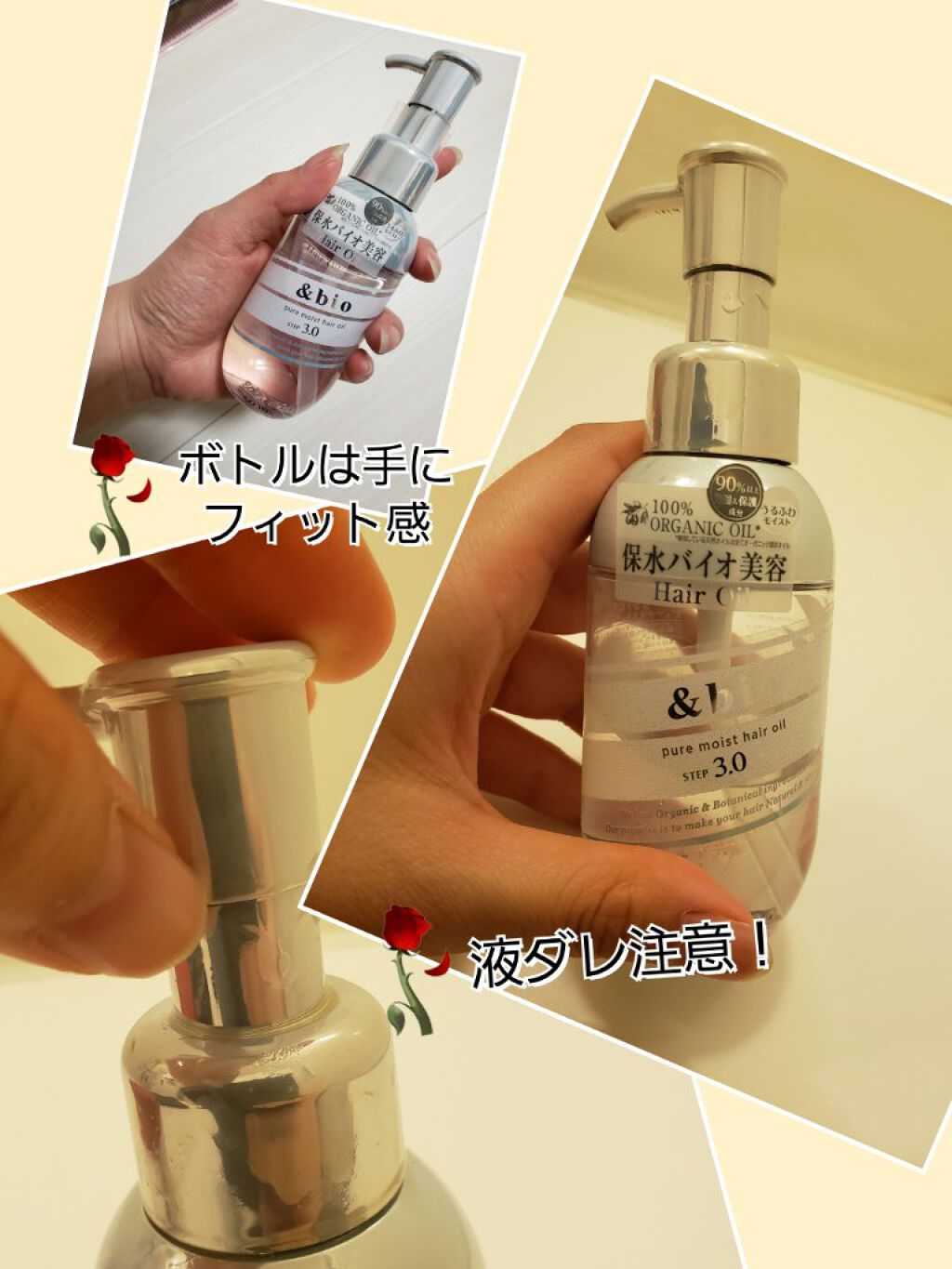 お久しぶりです!✨トライアルシャンプーもある程度冒険し終わり、&honeyに落ち着いてしまってから投稿するものがなく…😂💦そんな中大好きなヴィークレアさんから新商品の情報が✨「&bio」ボトルのデザインはシンプルで丸い形状。自分が重要視している香りもマスカットのようなすごく良い香り✨また、詰め替えも進化しておりすごくボトルに入れやすい!他のシリーズもこのタイプにして欲しい位には詰め替えが楽でした✨思い切ってボトルで買って良かった!もうこれもずっと買おう‼️そう思っておりました…💦現在髪がだいぶ長くなりロングです。頭を洗い髪を乾かすと…数カ所に結び目が出来る…髪が絡まる。めちゃくちゃ絡まる…!!気をつけて洗っても蜘蛛の巣状態…😭😭😭ブラシはスムーズに通らず、酷い結び目にはカットするしかなく…こちらの現象、実は小学生の頃から見られてて、自分の髪質が悪いものだと思っていました。ただ現在愛用している&honeyのディープモイストに戻した所、絡まりが改善し「シャンプー(とトリートメント)が合わない」という事に初めて気づきました…💦まさかの香りは完璧なのに髪に合わない…‼️😭とても悲しい…詰め替えもまだあるのに…という訳で現在は使用出来ずです。髪を切ったら使用出来ると思うのでそれまで待ってて‼️