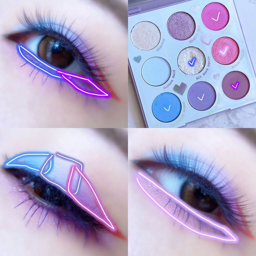 〚パステルカラーなアイシャドウでキキララメイク☽・:*〛こんにちは🦋今回はカラポのアイシャドウを使ったキキララメイク🦄🍬.。_____________________________。.🍬使用コスメ✐☡ColourPop|InATranceRMK|Wカラーマスカラ|EX-01パープルレッドCelvoke|シュアネスアイライナーリキッド|EX04TOMFORDBEAUTY|ウルトラリッチリップカラー|12Cジョージー🍬.。_____________________________。.🍬まず👀先日買ったパレットを初おろし🤍やっぱりめちゃくちゃ可愛いんや……🤤✨元々キキララっぽいなぁと思ってたので思い切ってキキララ風メイクに☽・:*パステルカラーがメインですが発色は良いので淡すぎてボケたりせずグラデーションも綺麗に作れます✨マスカラはRMKのWカラーマスカラを使ってパープルに🦄アイライナーはCelvokeの去年のコフレに入っていたピンクのアイライナー🎀お次は💄これまたお気に入りのリップですパープルカラーに青ラメがチラチラしていて本当に可愛すぎる🤦♀️上品な艶感でさすが最高峰のブランドなだけありますこれもう国内じゃ手に入らないのが悲しい……🥲海外ならまだ手に入るのかな?どうなんだろうメイク解説🐺-----☞左下を目頭に☞中央下を黒目上に☞右上を目尻に☞境目をぼかす☞中央右を涙袋全体に☞右下を目尻の三角ゾーンに☞中央を目のキワに沿って置く☞アイライナーは二重の線に沿って囲み風に-----閲覧ありがとうございました🦋#今日のメイク#今日のコスメ#メイク#アイメイク#パステルカラー#パステルカラーメイク#カラーメイク#キキララ#ブルーメイク#ピンクメイク#ブルベ#ブルベ冬#ブルベ冬_メイク#ブルベ冬コスメ#ブルベ冬_リップ#ブルベ冬_アイシャドウ#クールウィンター#ギャルメイク#リップ#パープル_リップ#青ラメ#海外コスメ#デパコスリップ#カラーポップ#トムフォード_リップ#colourpop#tomford#私の中の神コスメ