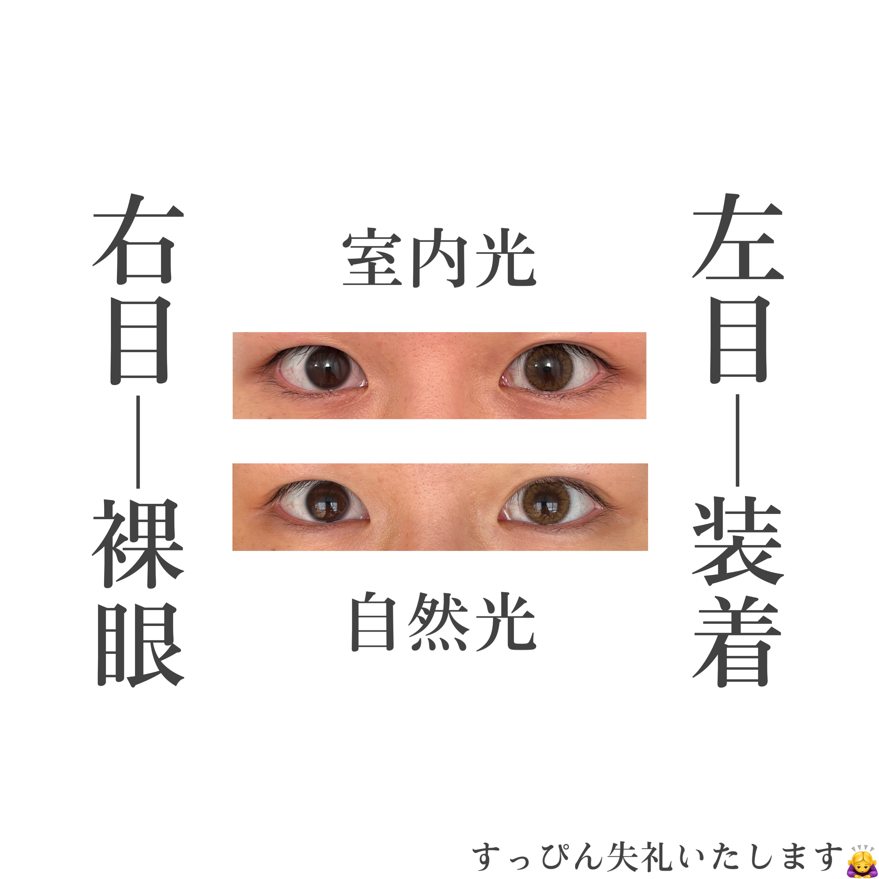 小さめでフチ感も弱いから裸眼に勘違いされるほどナチュラル。だけどやりすぎずに盛れて、真っ黒裸眼でも自然なトーンアップを演出するカラコン。写真でもちゃんとオレンジブラウンの瞳になって光が入っているのがわかる。暖かみのある明るい瞳を演出するので、...